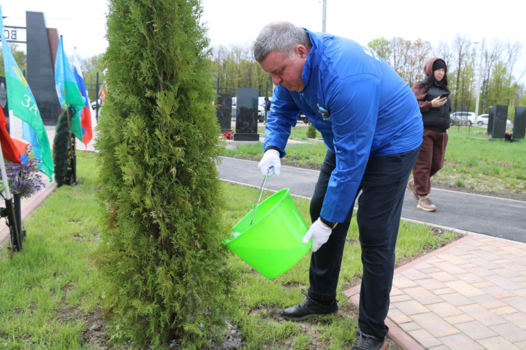 Сегодня в областной столице убирали тротуары, газоны от мусора, проводили посадку и опиловку деревьев, собирали смет. Отдельное внимание – уборке и благоустройству воинских мемориалов. В этом году Тула, как и вся страна, отметит 80-летие Победы в Великой Отечественной войне. Илья Беспалов участвовал в работах по благоустройству на 5-м воинском кладбище. Там поливали деревья, красили ограждения, бордюры.