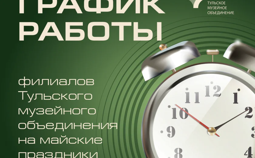 С 1 по 11 мая в Тульской области будут действовать изменения в графике работы музеев, приуроченные к празднованию майских праздников и 80-летию Победы в Великой Отечественной войне.