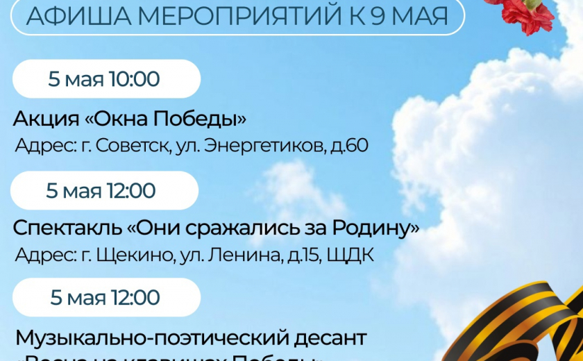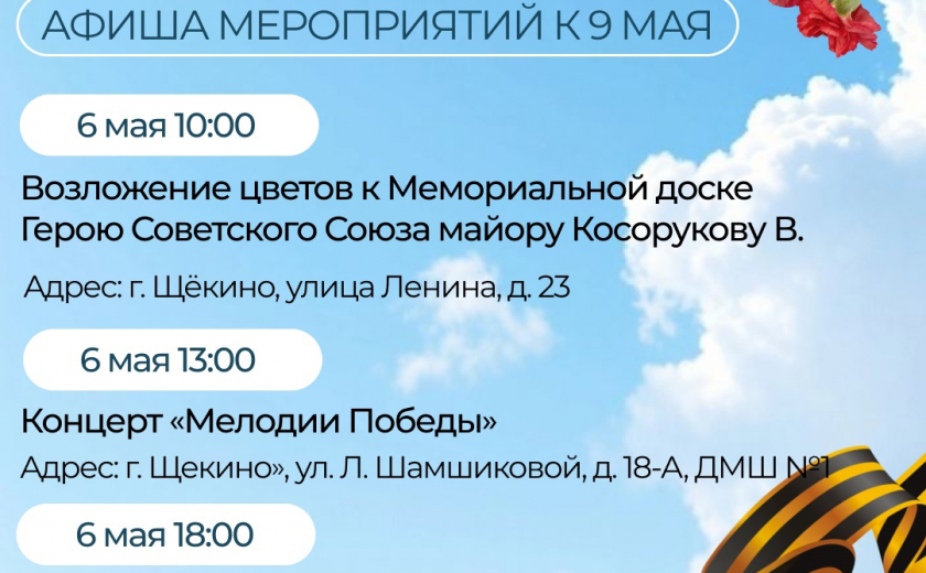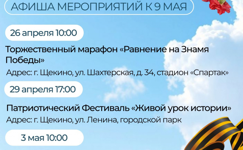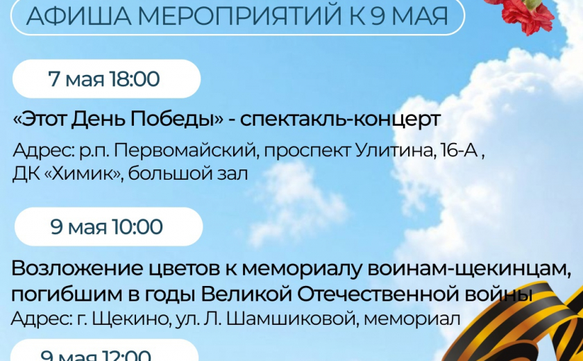 Администрация Щекинского района опубликовала подробную афишу на День Победы. К 80-летию Победы в Великой Отечественной войне в муниципалитете запланирована обширная программа мероприятий. К участию приглашаются все желающие.