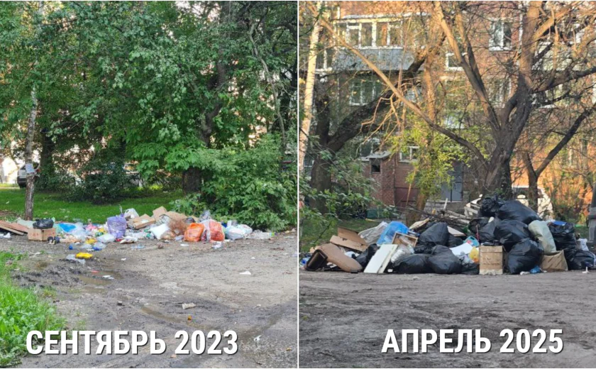 Спустя два года ситуация не изменилась — снова мусор на том же месте, правда, количество его выросло.