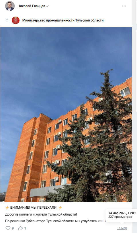 Похожая ситуация — у министра промышленности Николая Еланцева: тоже один пост — и тот скопированный с официальной группы министерства, закрытые комментарии и отсутствие обратной связи от аудитории.