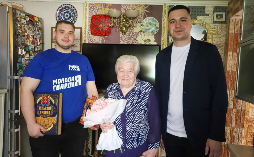 В среду, 23 апреля, депутат Тульской городской Думы, координатор волонтерского центра «Единой России» Павел Астафьев совместно с активистами «Молодой Гвардии» навестили 96 летнюю труженицу тыла Александру Логачеву, чтобы поздравить женщину с днем рождения. Волонтеры также вручили ей подарки и букет цветов.
