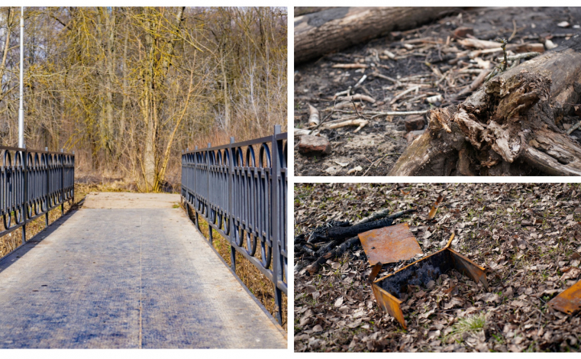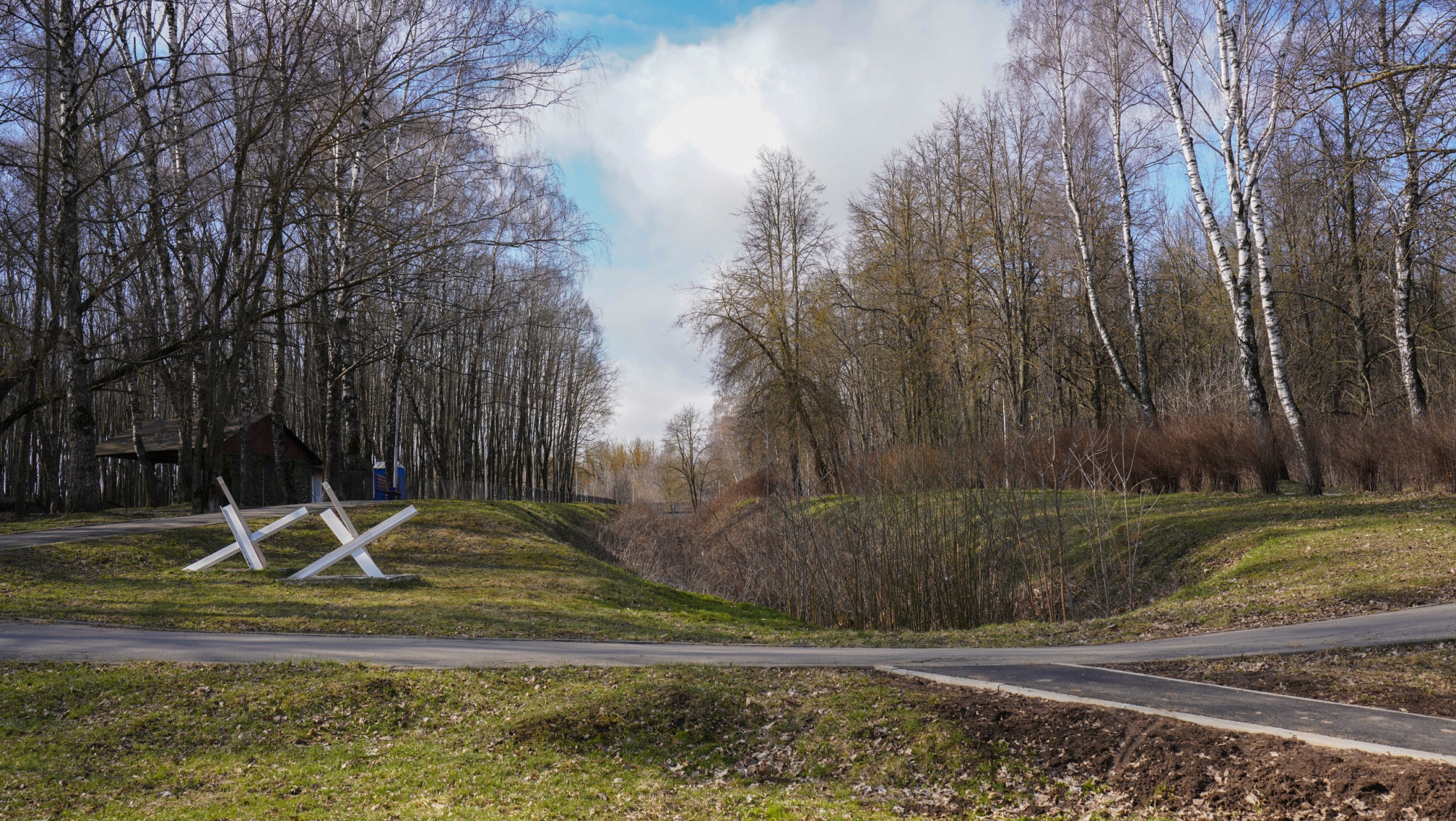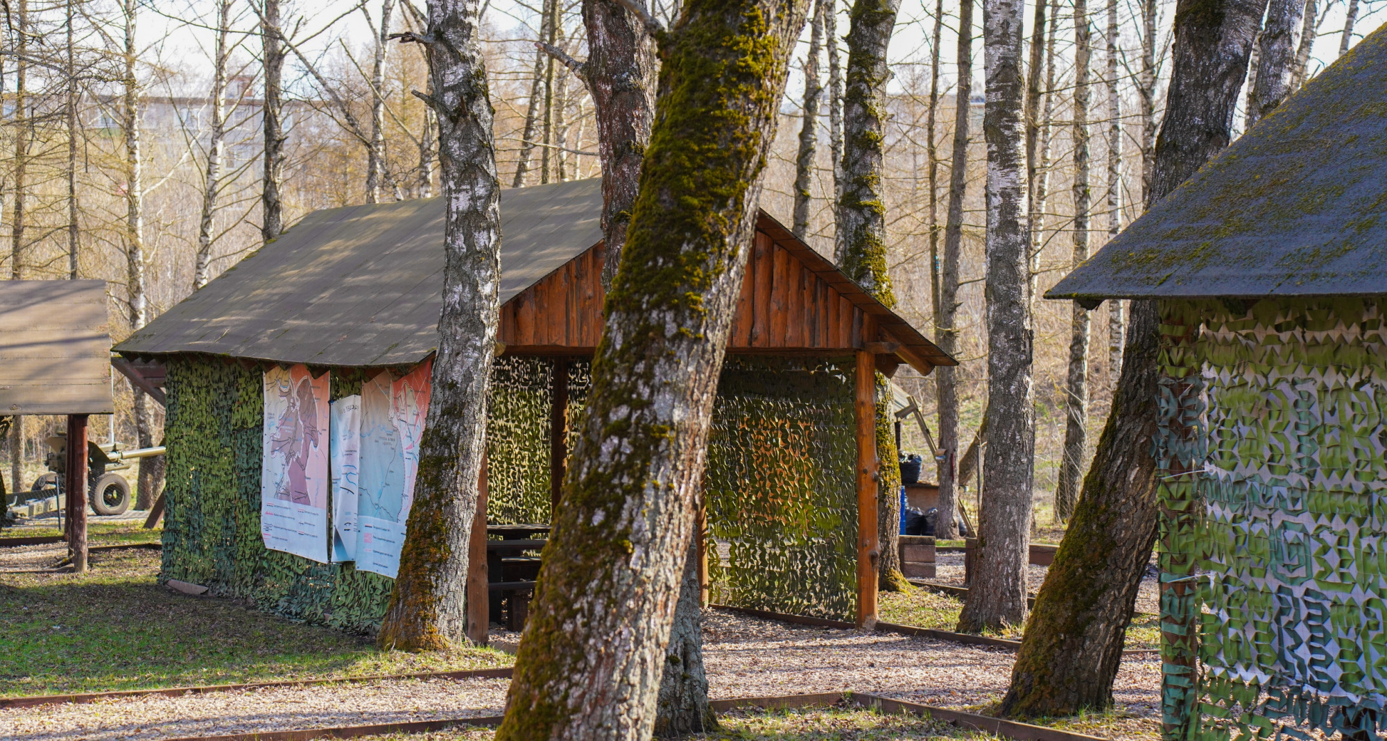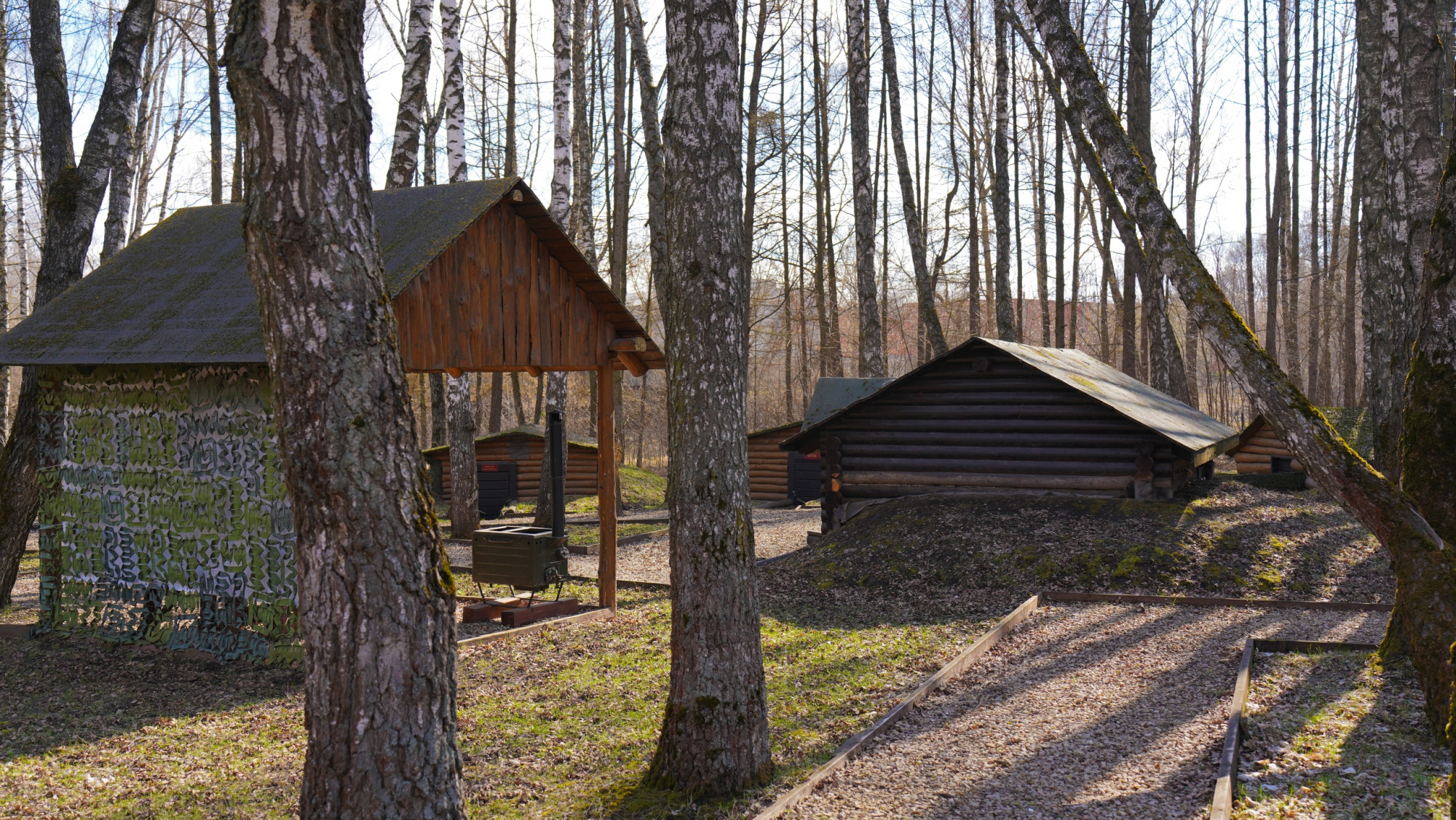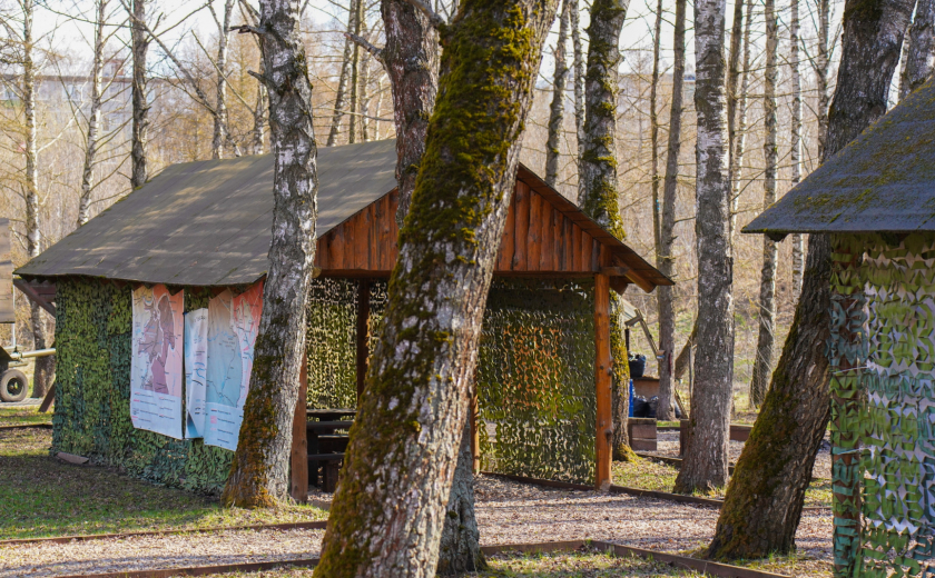 Единственное место в парке, где более-менее чисто — это военно-патриотический комплекс. Напомним, он появился здесь к 75-летию обороны города в 2016 году. Были построены землянки и окопы, смотровая вышка, партизанская школа и т. п. Однако информации о том, как это все работает (и работает ли), ни местным жителям, ни нашему фотокорреспонденту выяснить не удалось.
