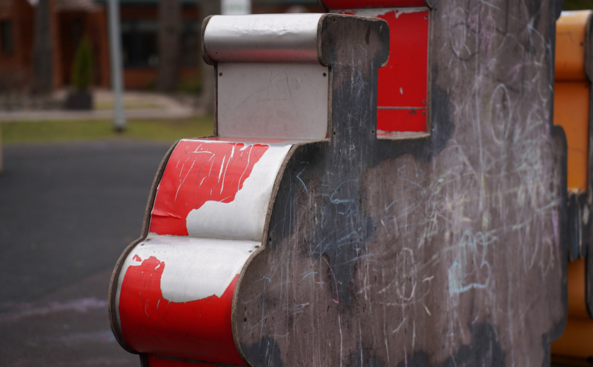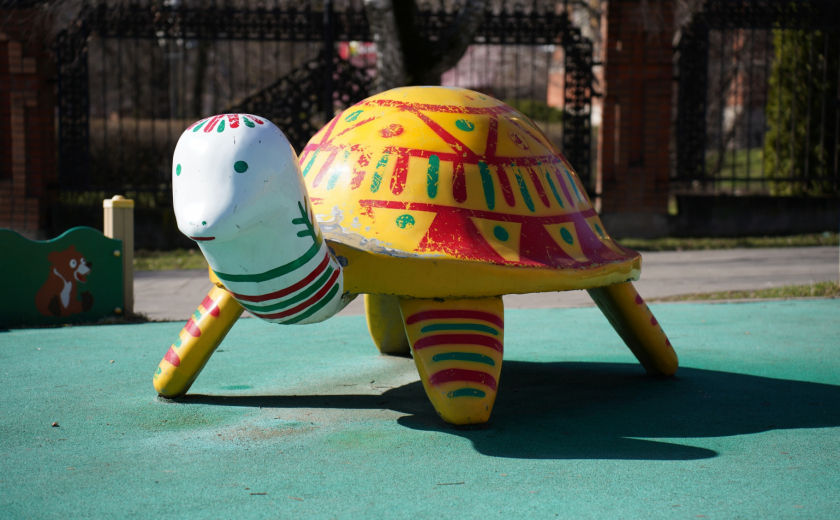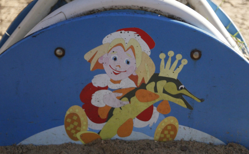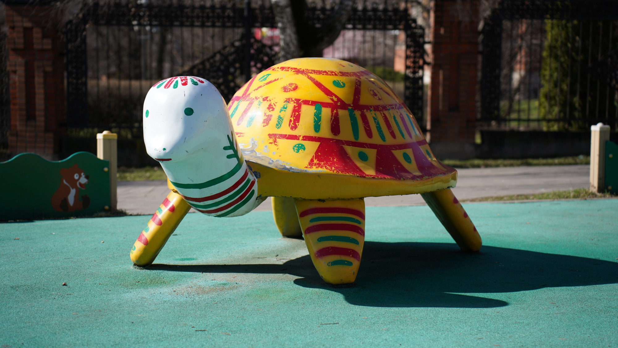 А вот детская площадка на фонтанной площади помнит еще Владимира Груздева, который был губернатором Тульской области до 2016 года. Состояние выдает возраст: за десять с лишним лет площадка активно эксплуатировалась детьми, и оборудование, мягко говоря, поизносилось. Потрескавшаяся краска, покрытие в заплатках и фигурки сказочных персонажей с выцветшими глазами — это не то, что хочется видеть на детской площадке. Вероятно, масштабной реконструкции тут не требуется, достаточно косметического ремонта. А там — как нормативы позволяют.