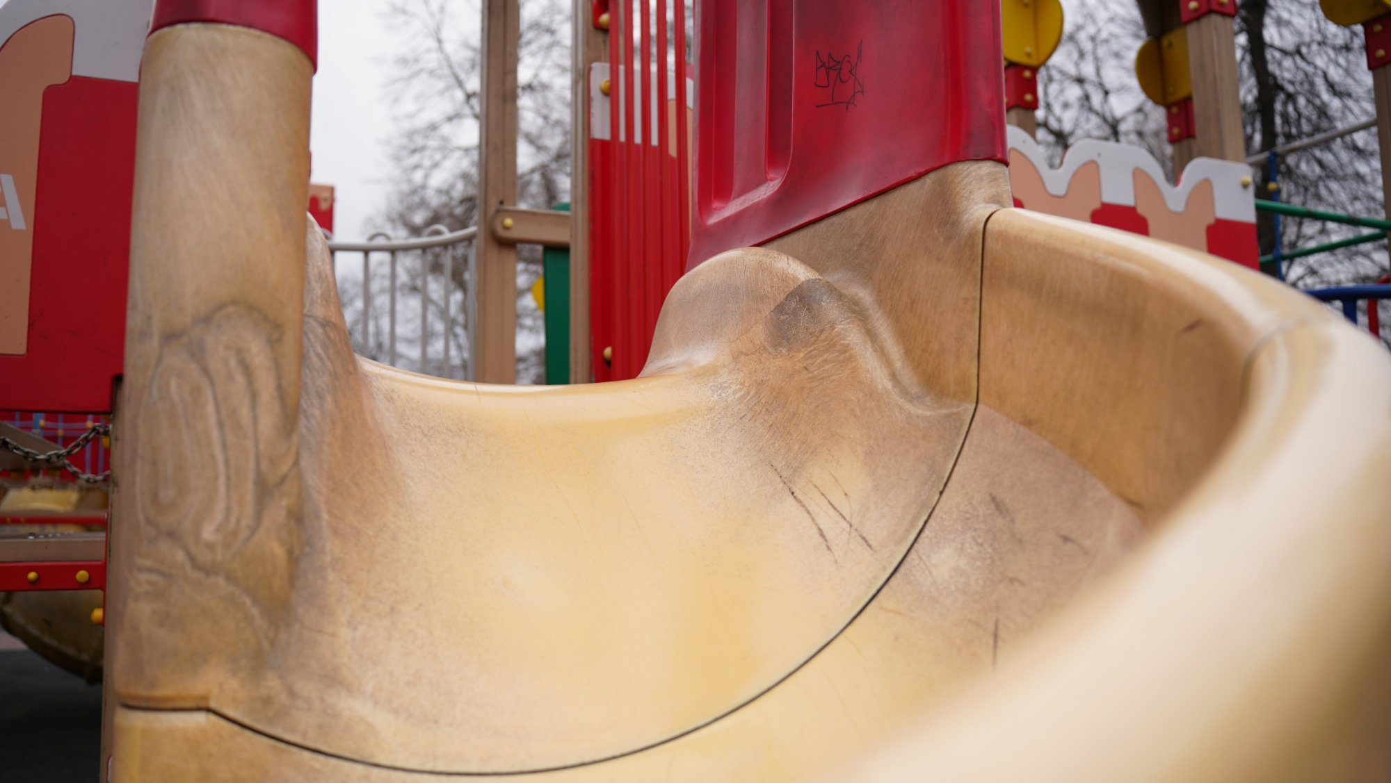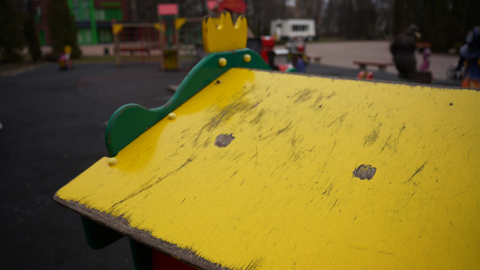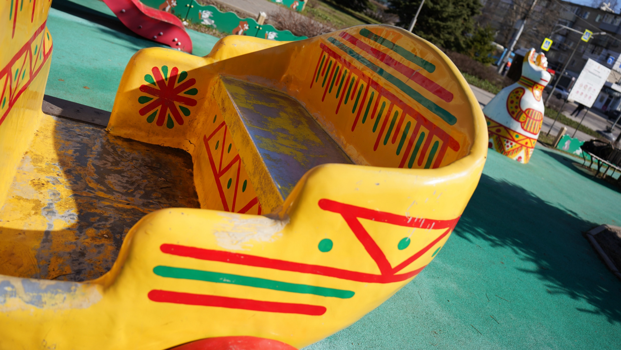 В Пролетарском парке детский городок — подарок от бывшего губернатора Владимира Груздева. Днем тут многолюдно: гуляют мамы с детьми, бабушки с внуками, школьники после уроков. Популярность среди местных жителей сыграла с этой детской площадкой злую шутку: за время своей эксплуатации она выглядит удручающе.