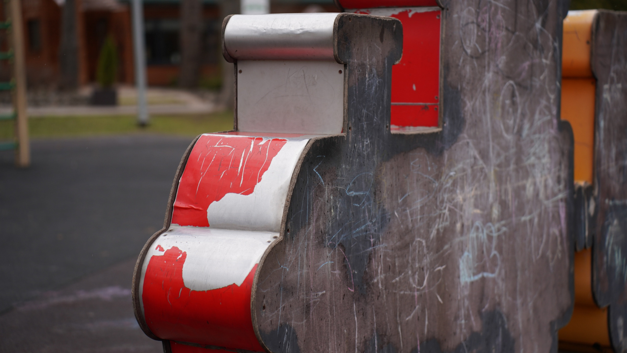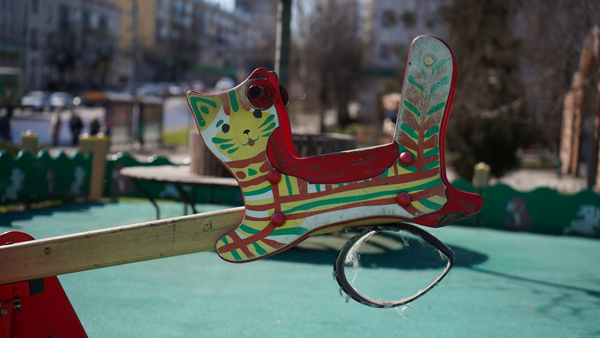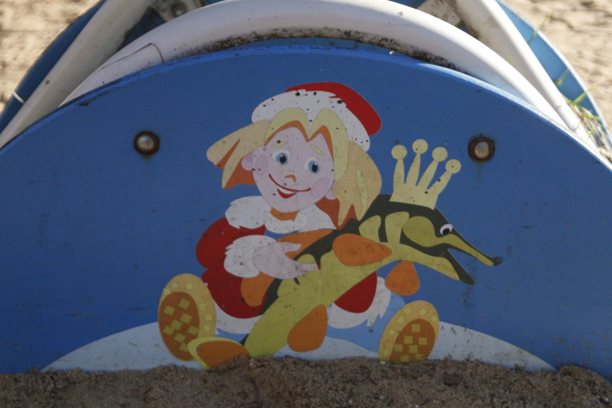 В Пролетарском парке детский городок — подарок от бывшего губернатора Владимира Груздева. Днем тут многолюдно: гуляют мамы с детьми, бабушки с внуками, школьники после уроков. Популярность среди местных жителей сыграла с этой детской площадкой злую шутку: за время своей эксплуатации она выглядит удручающе.