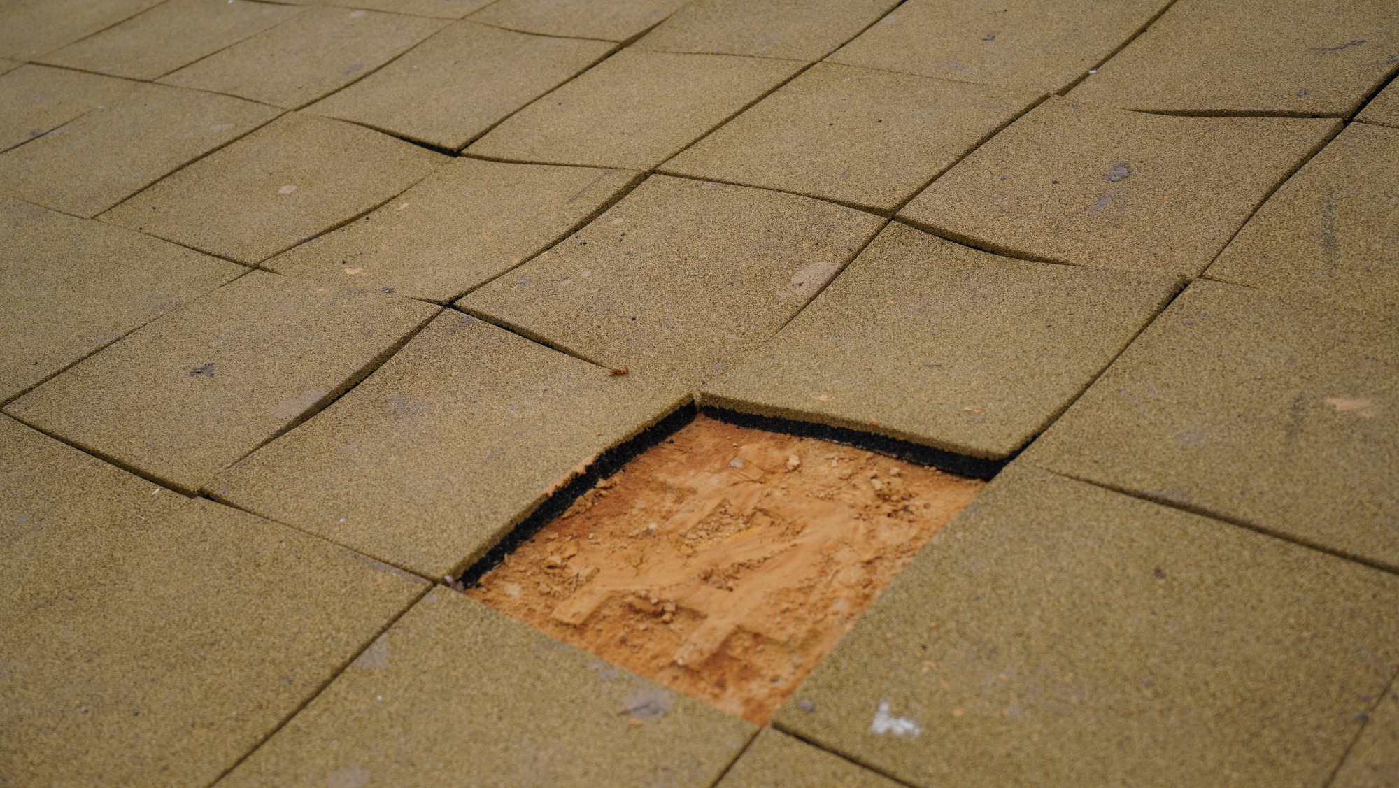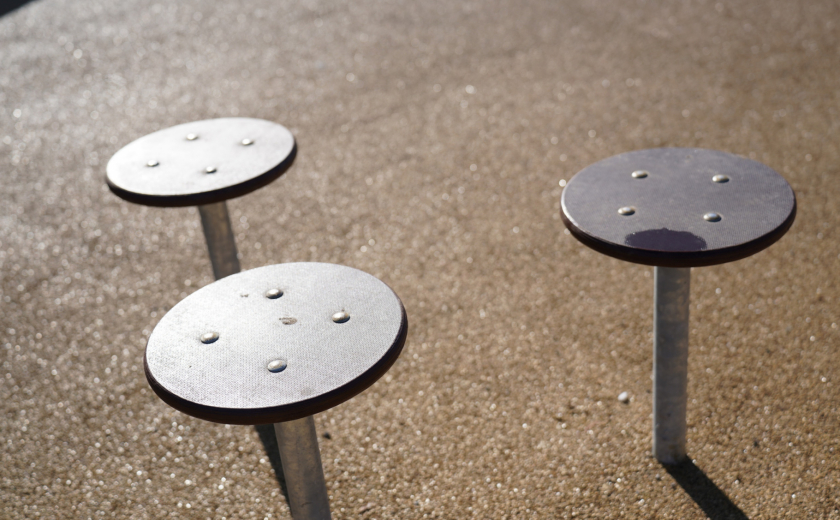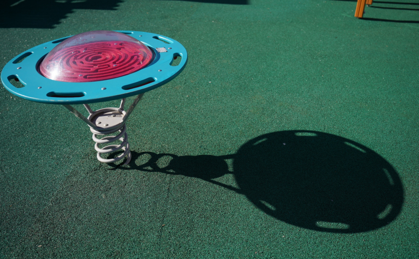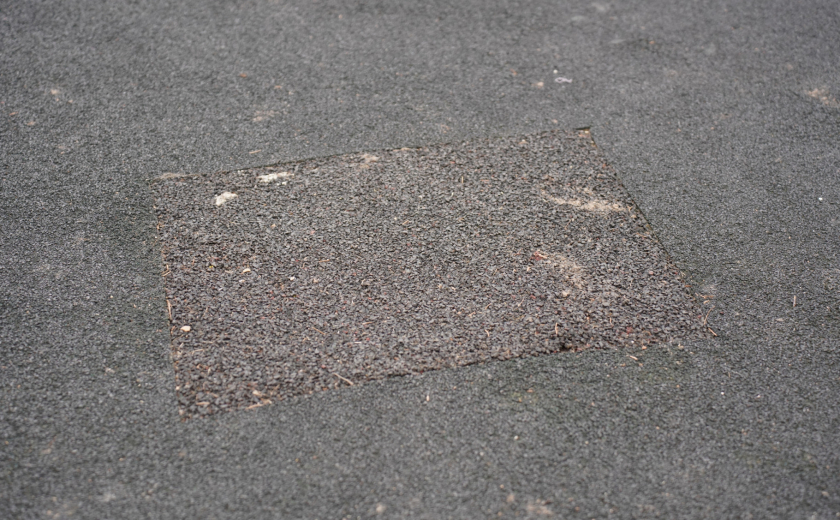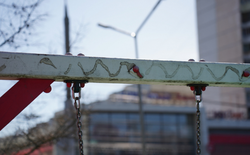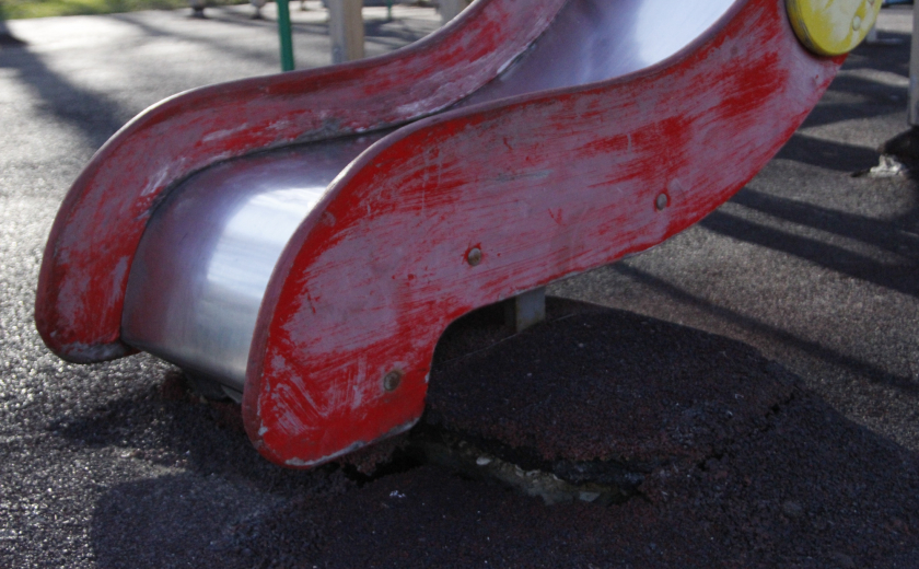 Покрытие только под замену. Местами оно пошло трещинами и «полиняло», есть заплатки и небольшие дыры, неровности. Самое неприятное: в местах установки игрового комплекса покрытие не просто вздулось, оно поднялось на несколько сантиметров вместе с цементом. Побежит ребенок, не заметит «препятствие», споткнется и упадет — царапины и ссадины в лучшем случае обеспечены.