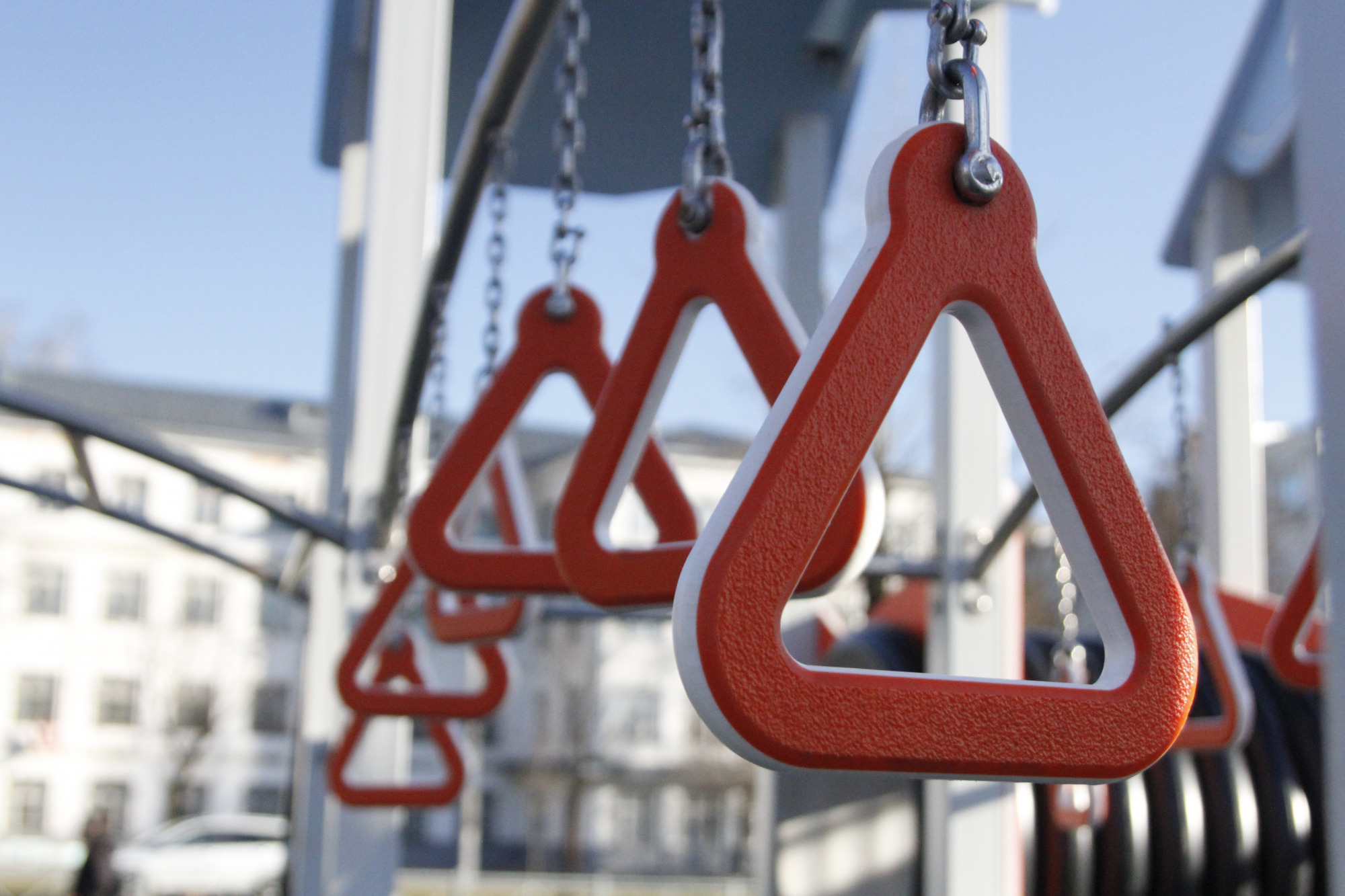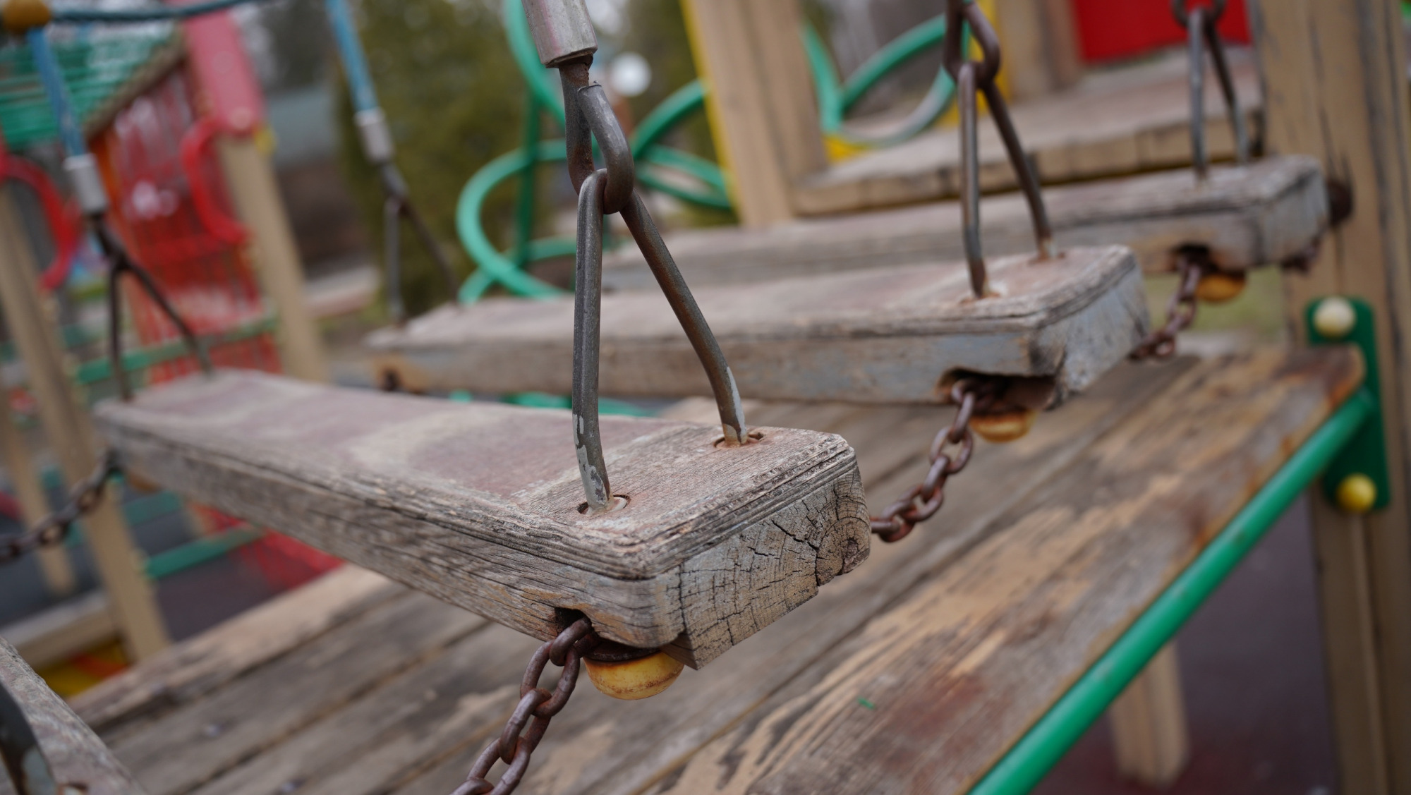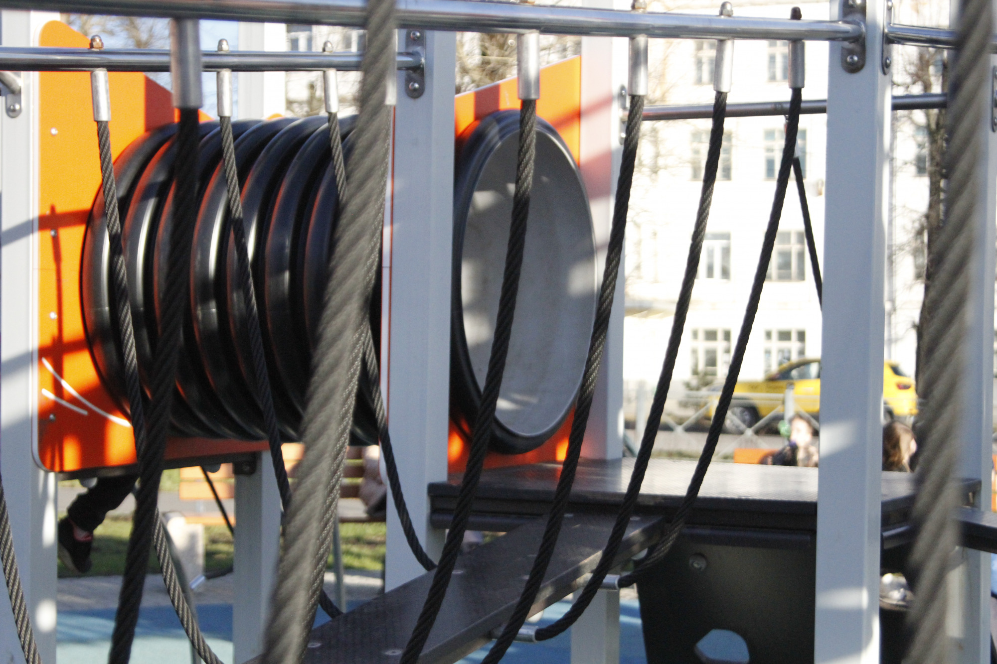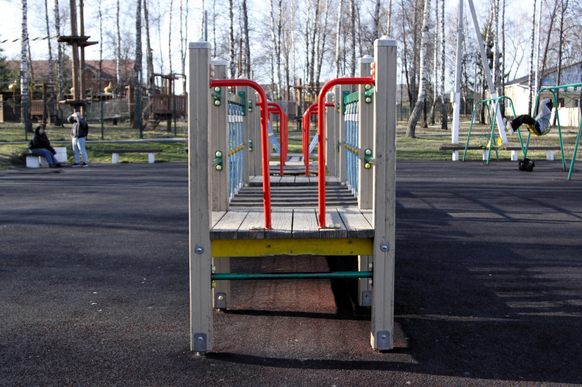 Тут явно требуется косметический ремонт: краска с «игрушек» уже слезла. Оборудование в целом выглядит крепким и надежным.