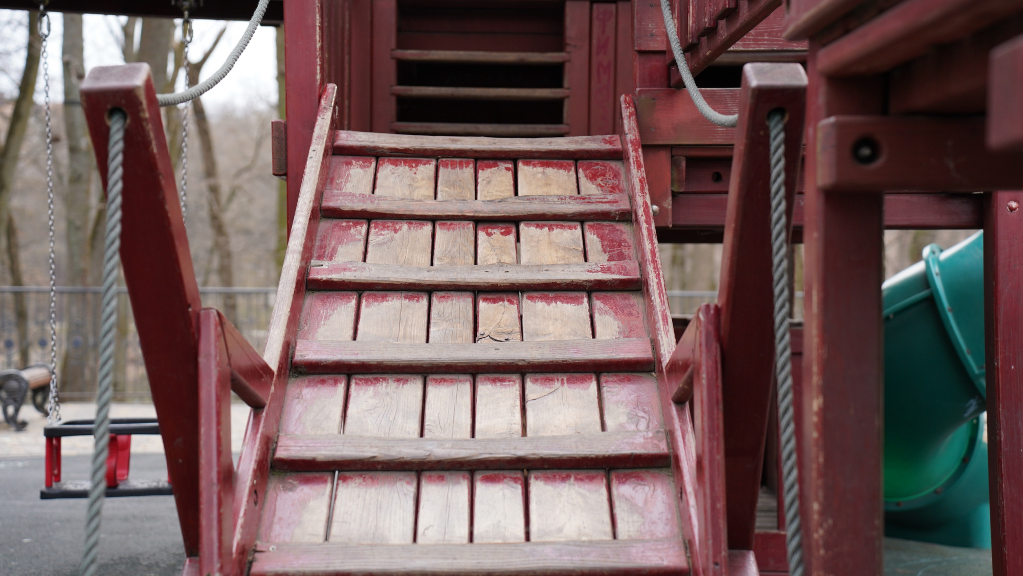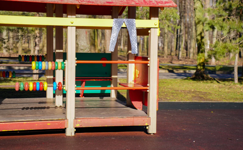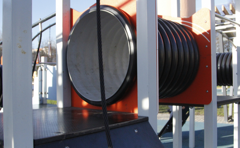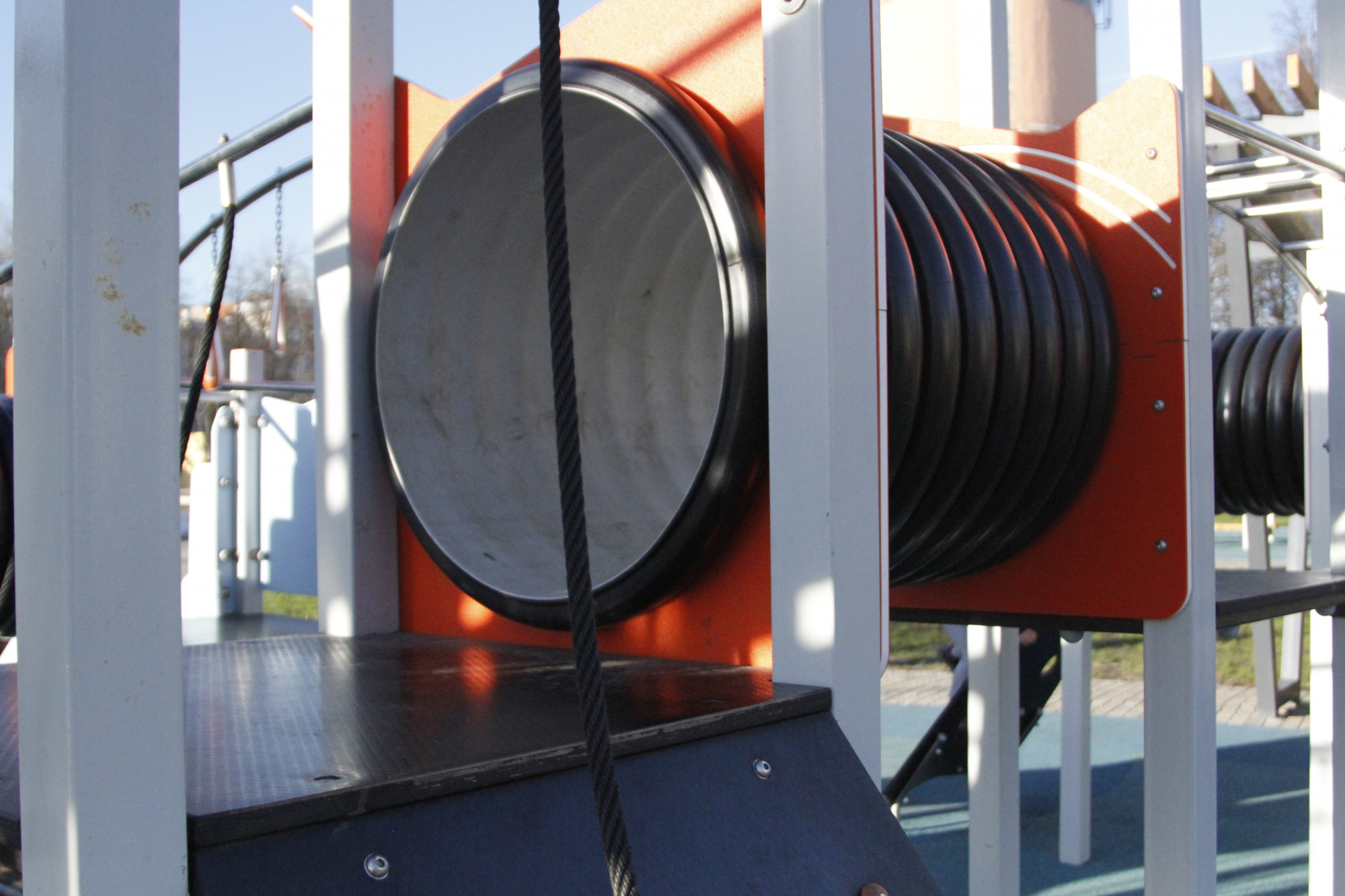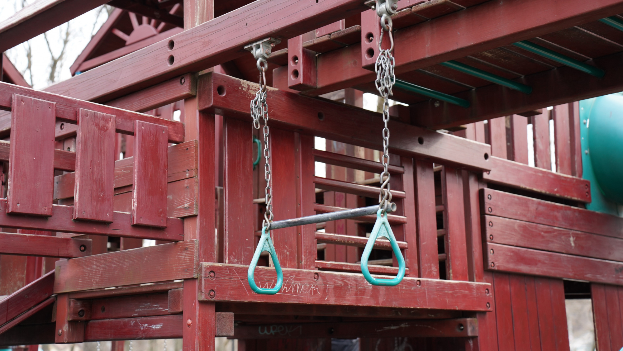Тут явно требуется косметический ремонт: краска с «игрушек» уже слезла. Оборудование в целом выглядит крепким и надежным.