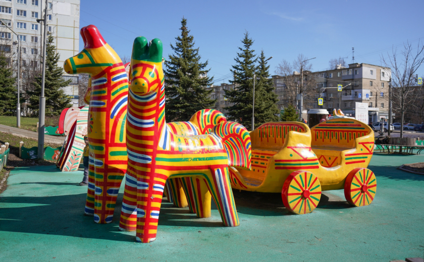 Детский городок на углу Октябрьской и Пузакова появился в 2017 году, установка проводилась за счет средств фонда развития «Перспектива» и по инициативе Алексея Дюмина. Всего здесь — 11 игровых элементов из стеклопластика, каждый расписан в стиле филимоновской игрушки.