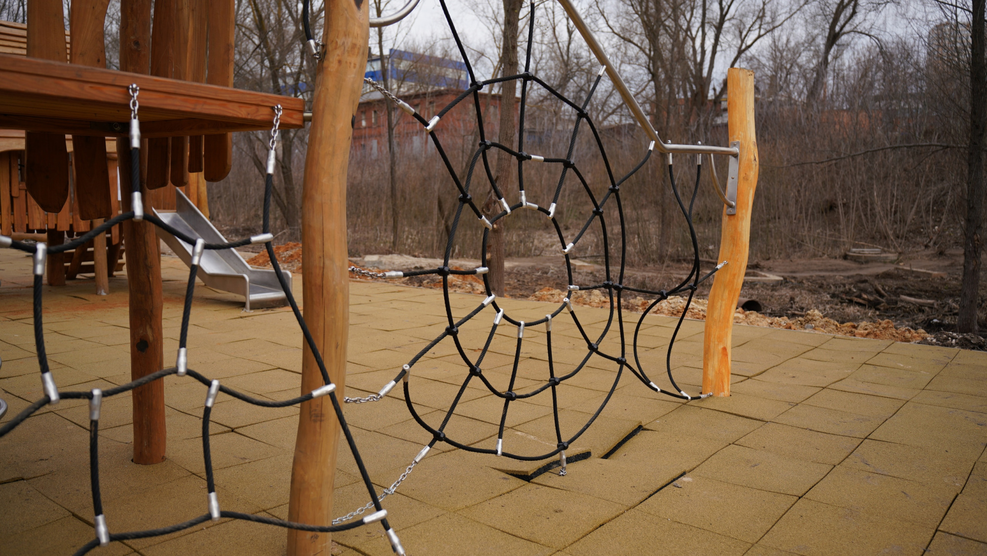 Это не единственная игровая зона здесь: еще две новые детские площадки установили в «нижней части» Рогожинского парка (в районе ручья), где еще ведутся работы по благоустройству. И вот к ним остались вопросы.
