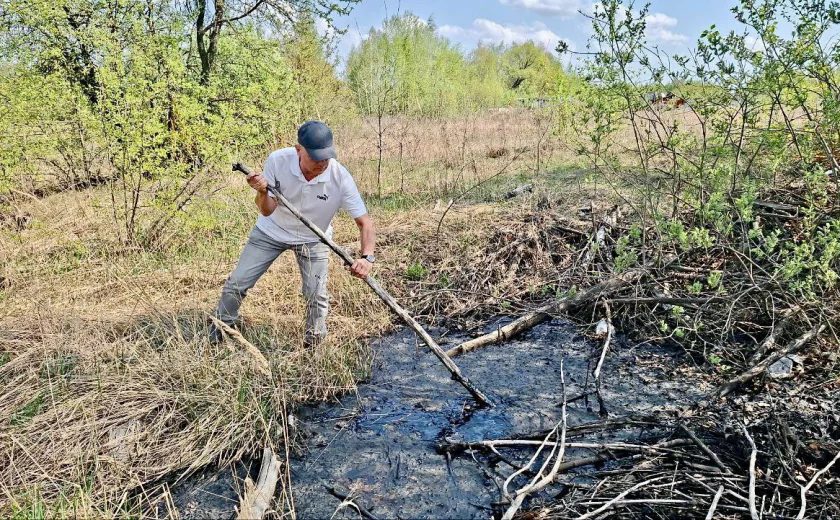«Этот битум или мазут разливается, заполняет все овраги. Земля вся пропитана, заболочена этим мазутом, и вот две собаки туда попали», — рассказал Вадим Баранов.