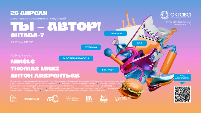 Творческий индустриальный кластер «Октава» 26 апреля отпразднует свой седьмой день рождения фестивалем креативных индустрий «ОКТАВА-7. Ты — автор!» В этот день пространство кластера превратится в центр притяжения музыкантов, художников, писателей и дизайнеров, где каждый сможет раскрыть свой потенциал и поучаствовать в создании нового.