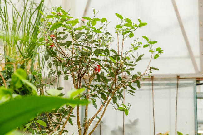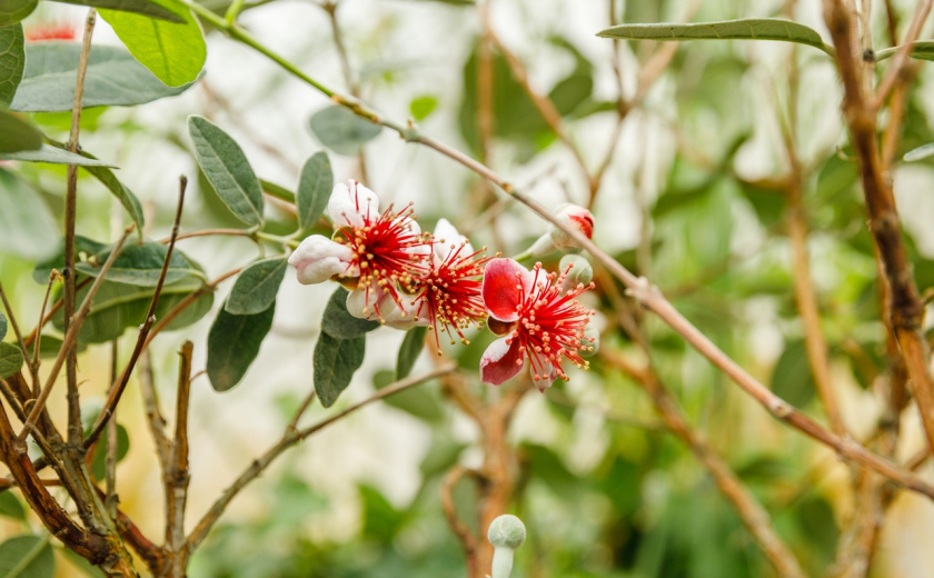 Плоды этого растения одновременно пахнут земляникой и ананасом, а вкус не сравнить ни с чем. Речь идет о фейхоа, которая растет в теплице музея-усадьбы «Ясная Поляна». На небольшом деревце уже появились первые цветки.