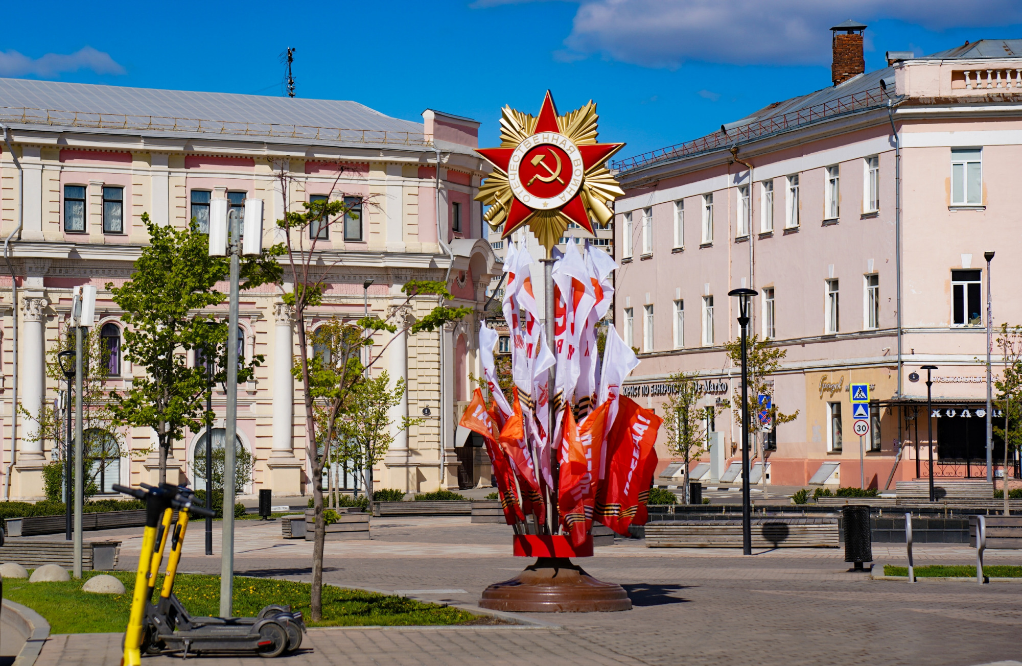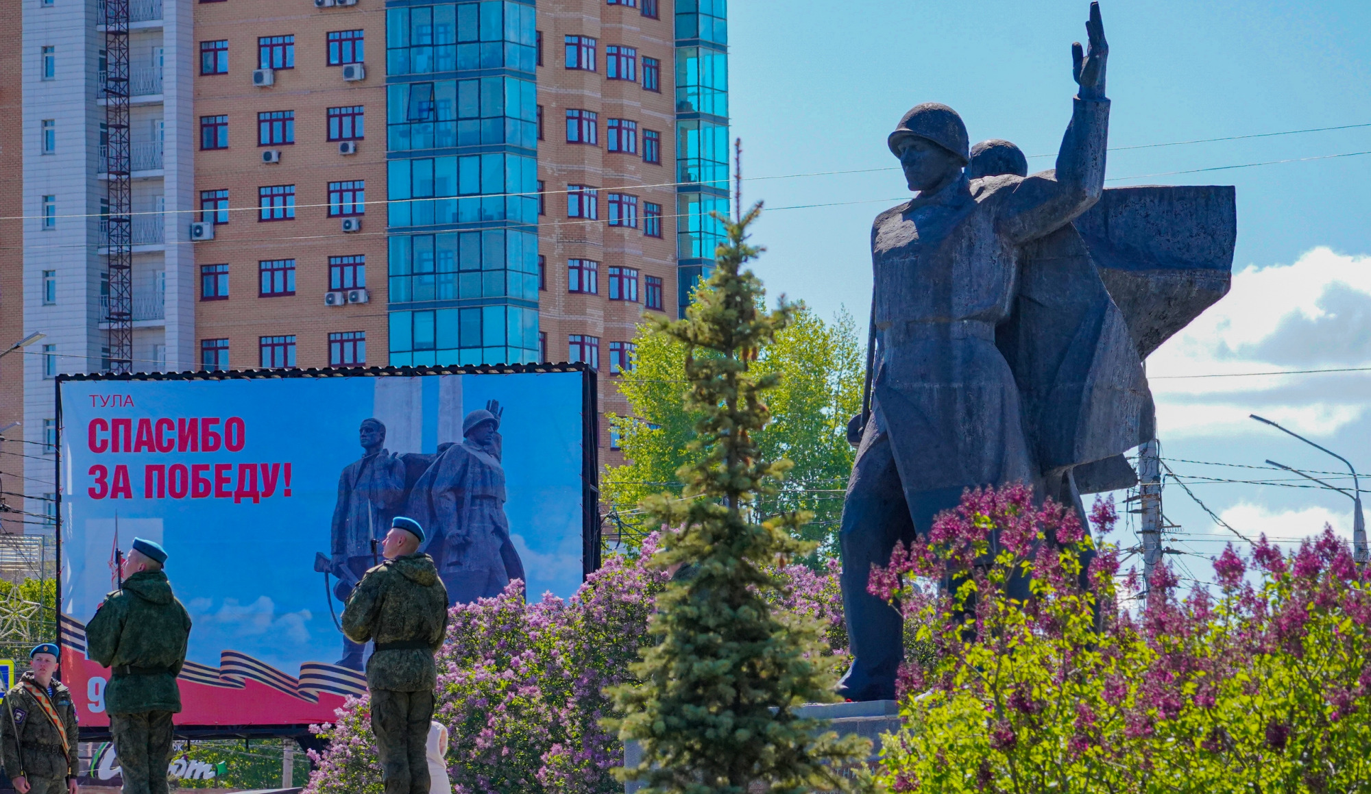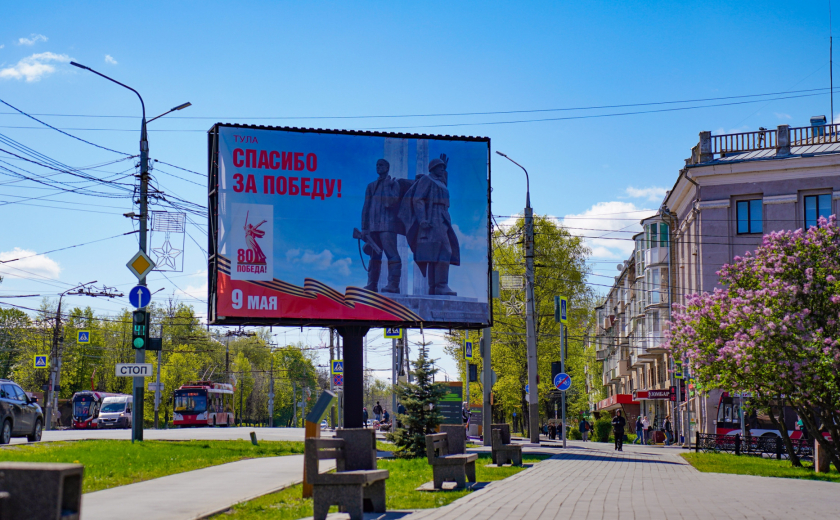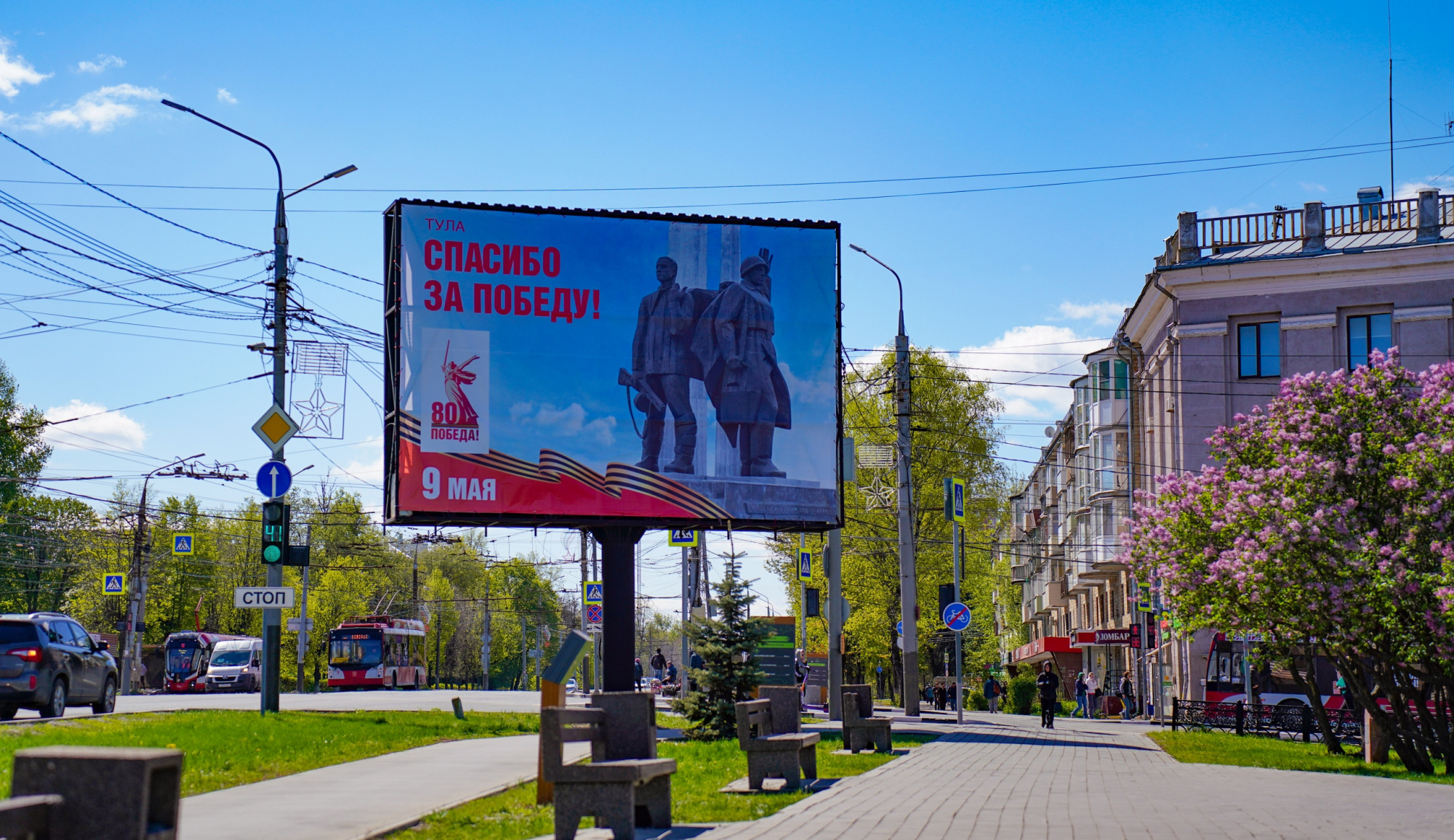 Тулу украсили в преддверии Дня Победы. Для этого были задействованы рекламные щиты и видеоэкраны, а также билборды.