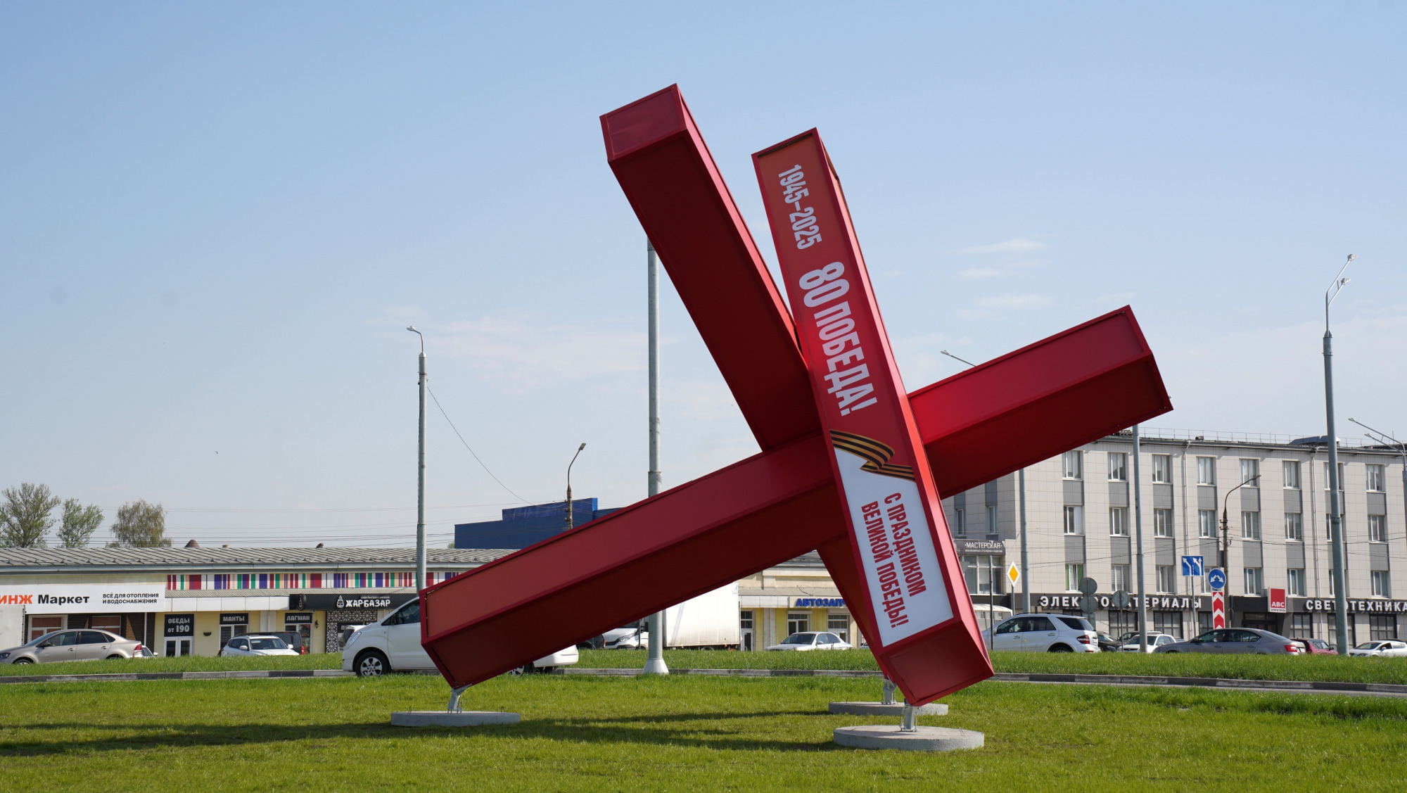 На улицах появились арт-объекты, стелы, флаговые композиции, дополненные «Орденом Отечественной войны». Флаги появились и на мостовых сооружениях города — Пролетарском, Зареченском мостах, Московском путепроводе. Рядом с новым мостом через Упу появился арт-объект в виде большого противотанкового ежа. В праздничном оформлении использовался официальный логотип празднования 80-летия Победы в виде памятника «Родина-мать зовет!» на Мамаевом кургане: он повторяется на баннерах, флагах и плакатах.