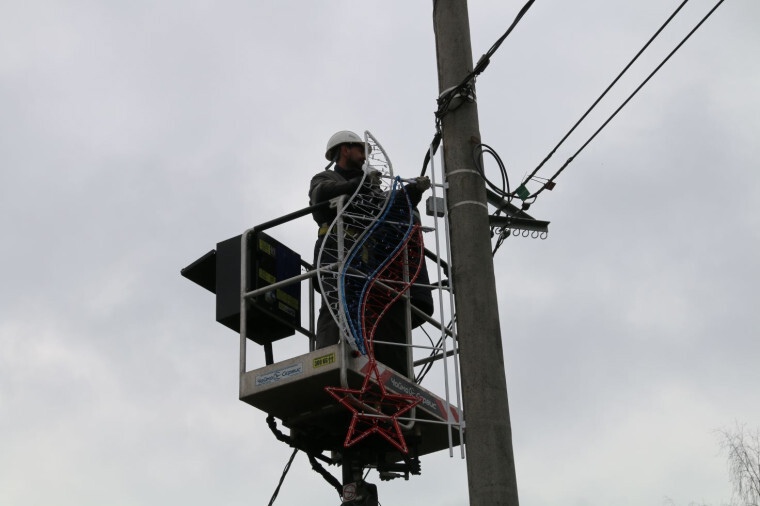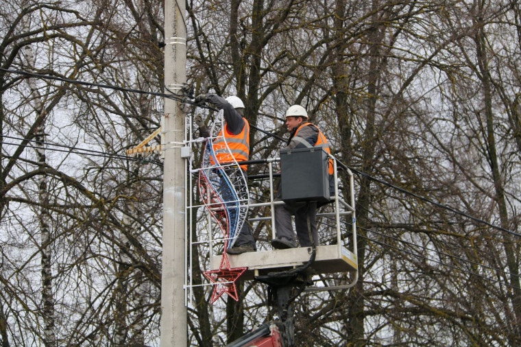 В честь 80-летия Победы на улицах Тулы началась установка световых консольных конструкций в виде пятиконечной звезды с триколором. Работы ведутся на Московском шоссе, а до 1 мая такие праздничные украшения появятся по всей оружейной столице.