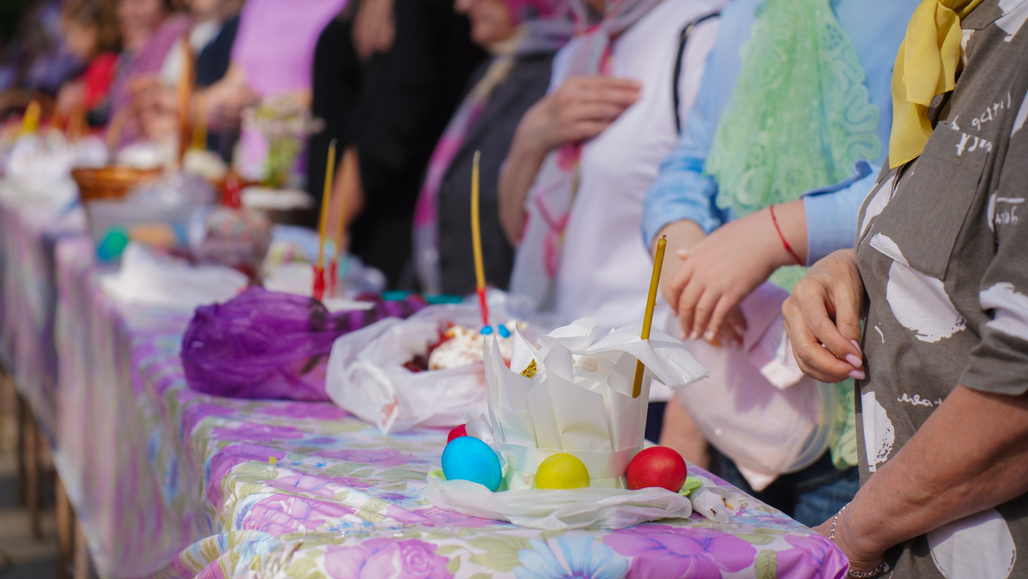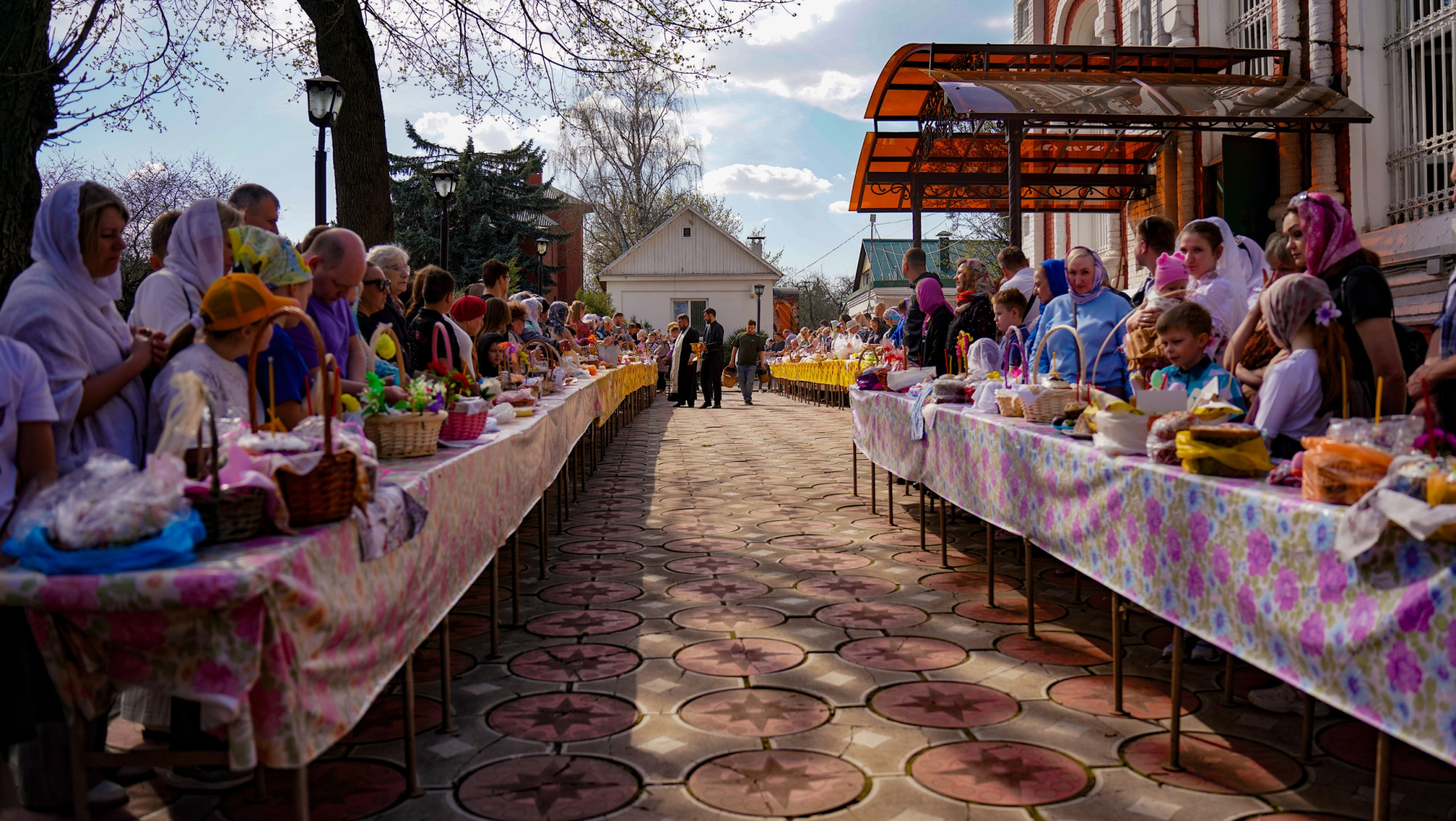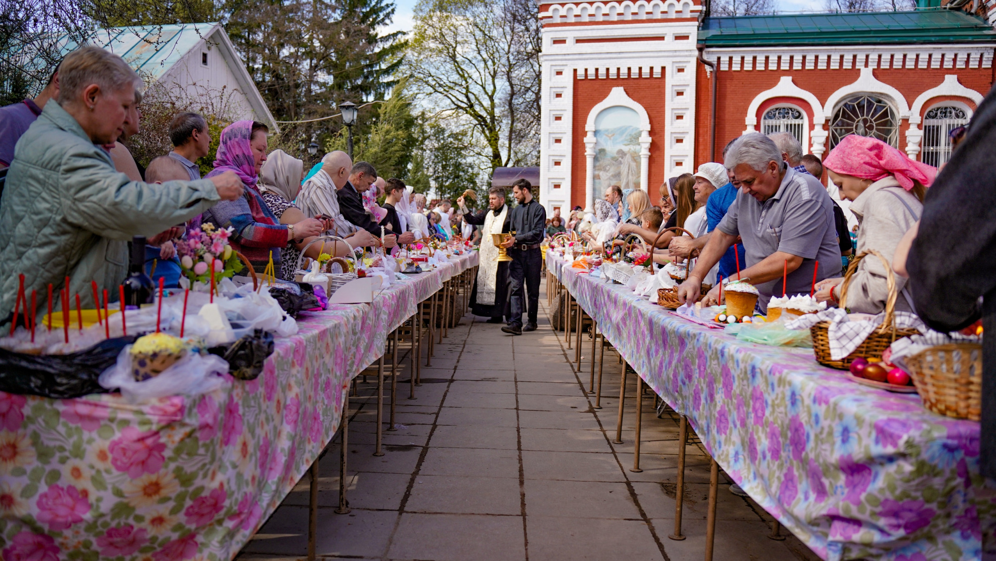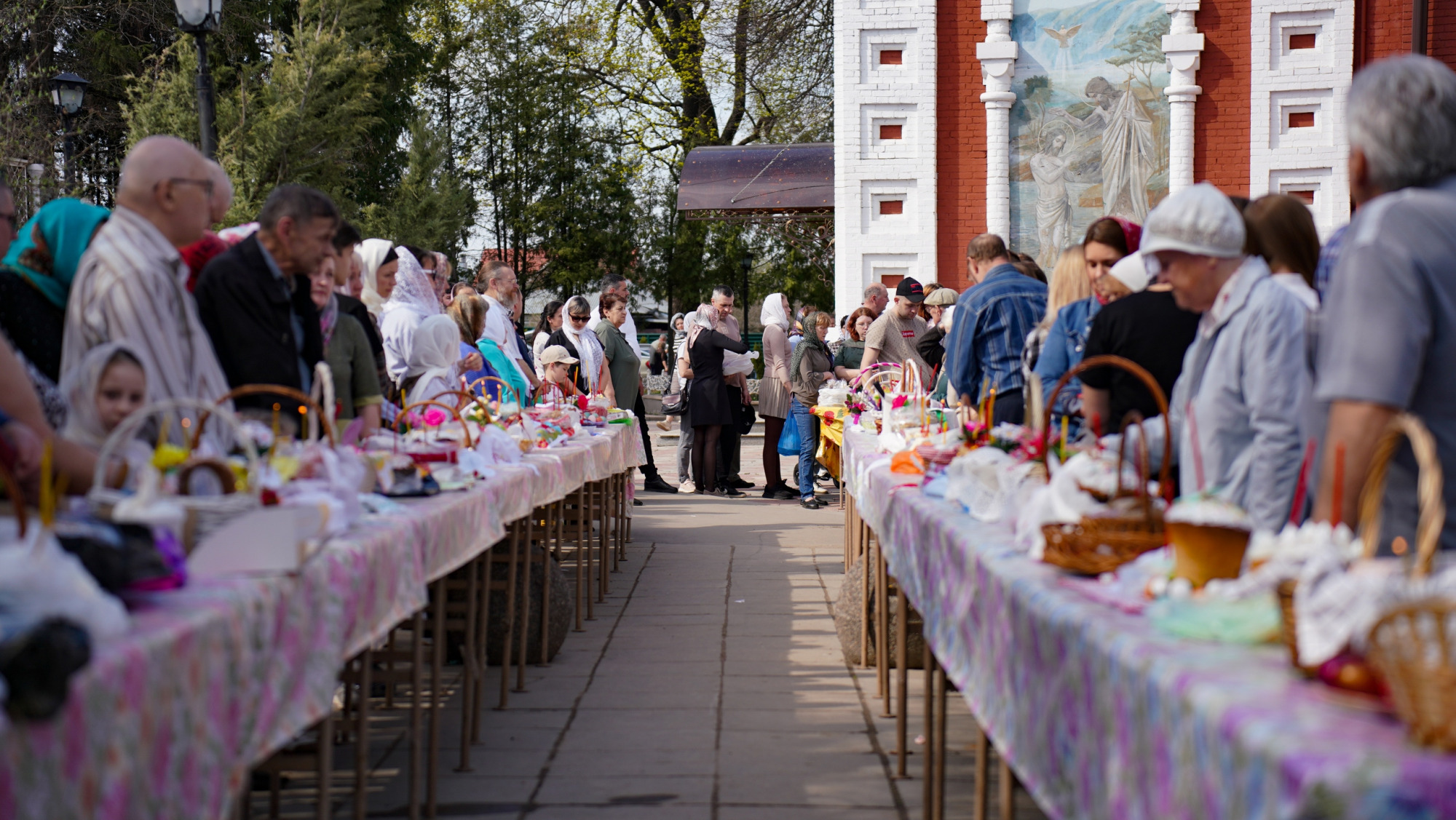 Освящение снеди традиционно проходит в преддверии Пасхи. Ее выставляют на специальные столы для окропления святой водой и молитвы.