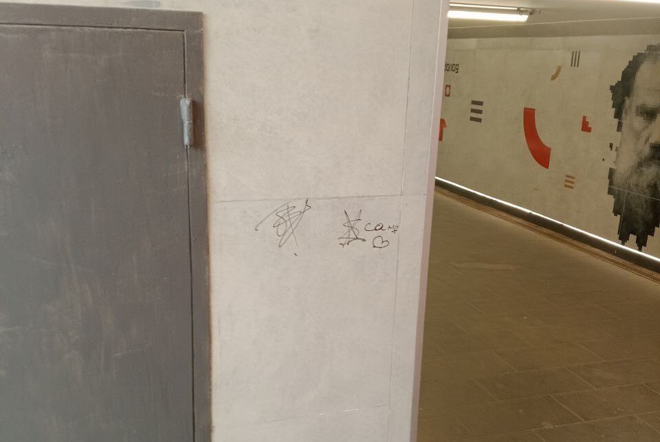 Вандалы в очередной раз испортили подземный пешеходный переход на улице Каминского. Теперь молодые люди изрисовали стены краской из баллончиков.