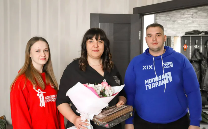 Активисты волонтерского центра «Единой России», «Молодой Гвардии» и «Волонтерской Роты» навестили жену российского военнослужащего, чтобы поздравить с днем рождения