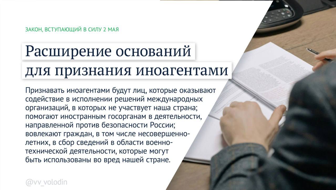 Закон вступит в силу 2 мая. Теперь иноагентами могут также признать: