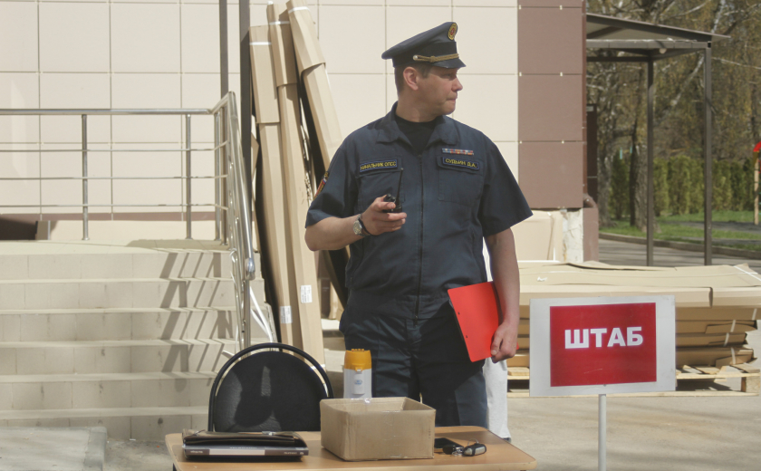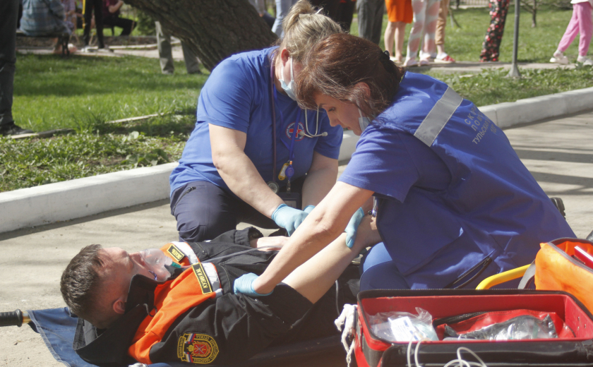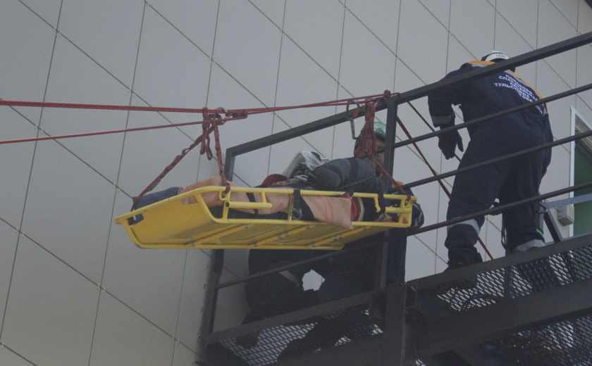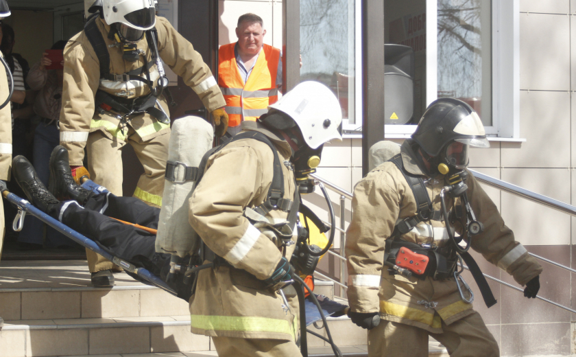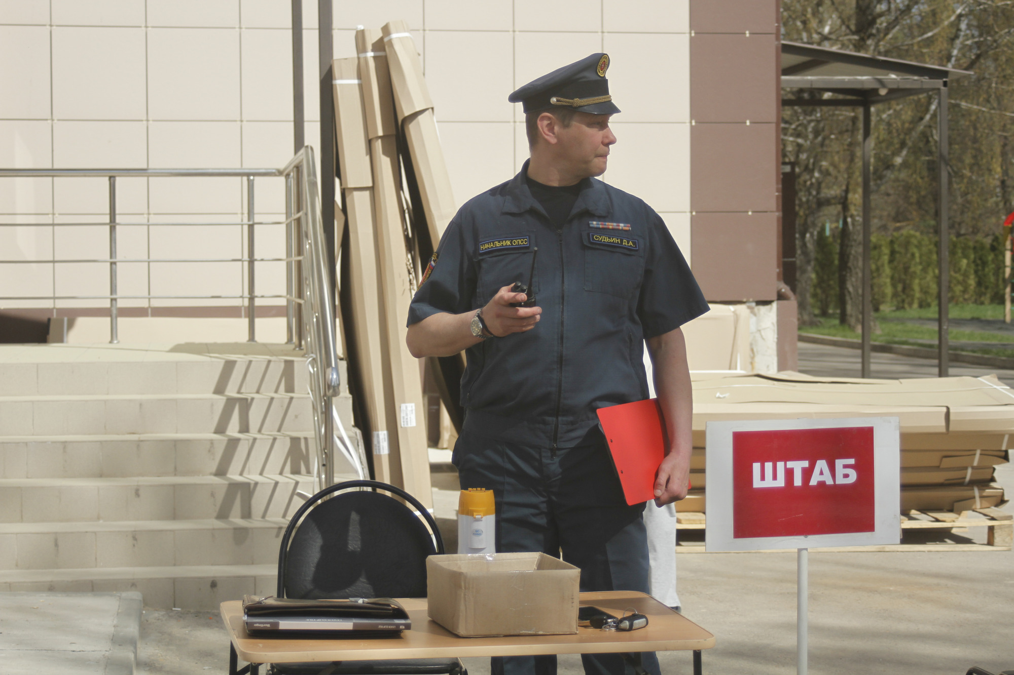 По легенде, в здание попали обломки сбитого вражеского беспилотника. Большая часть проживающих в соцучреждении была «эвакуирована» силами администрации. А уже приехавшим на место спасателям предстояло обнаружить очаг возгорания и найти в задымленных помещениях двоих пострадавших. У одного из них «был перелом голеностопа» — он был спасен звеном газодымозащитной службы, которое вынесло пострадавшего на носилках, второго спускали с верхних этажей с использованием веревок. После «пострадавших» передали врачам скорой помощи.
