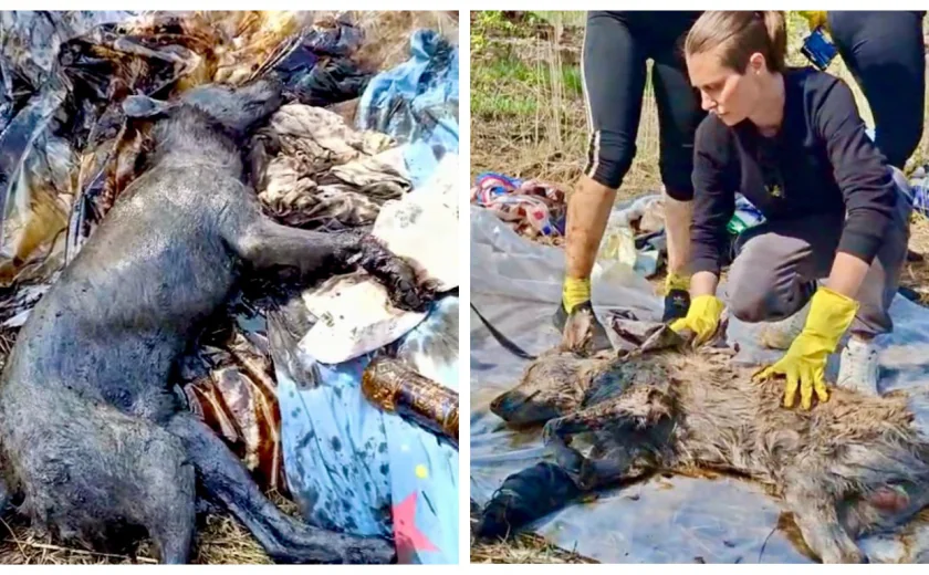 Уже организована проверка. Сейчас выжившее после падения в битум животное отмыли и повезли в ветеринарную клинику.