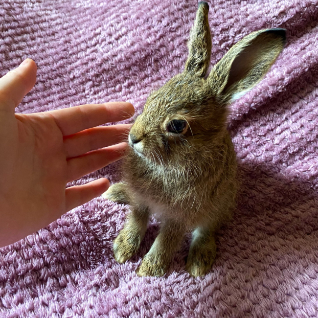 Тульский волонтер временно приютила зайца, спасенного от пала травы в Дубенском районе