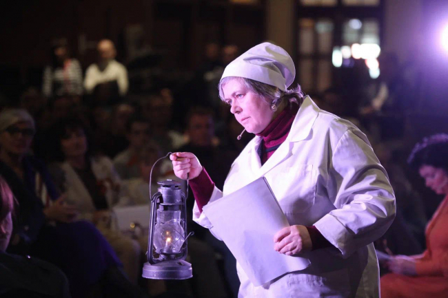 Она рассказывает о ходе оборонительной операции, а представляет новую постановку труппа Тульского драмтеатра. Зрители смогли увидеть «ожившие» образы героев прошлого. Например, легендарного врача Веру Гумилевскую.