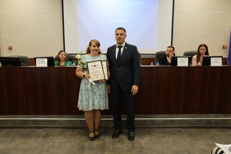 В ходе очередного заседания Тульской городской Думы победители ежегодной премии главы муниципального образования город Тула в трех номинациях получили дипломы и сертификаты на денежное вознаграждение.