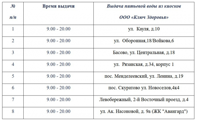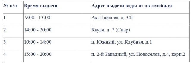 На время отключений будет организована бесплатная раздача питьевой воды по районам: