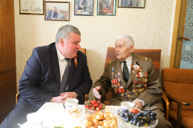 Илья Беспалов поблагодарил ветеранов за Победу, поздравил с праздником и вручил подарки.