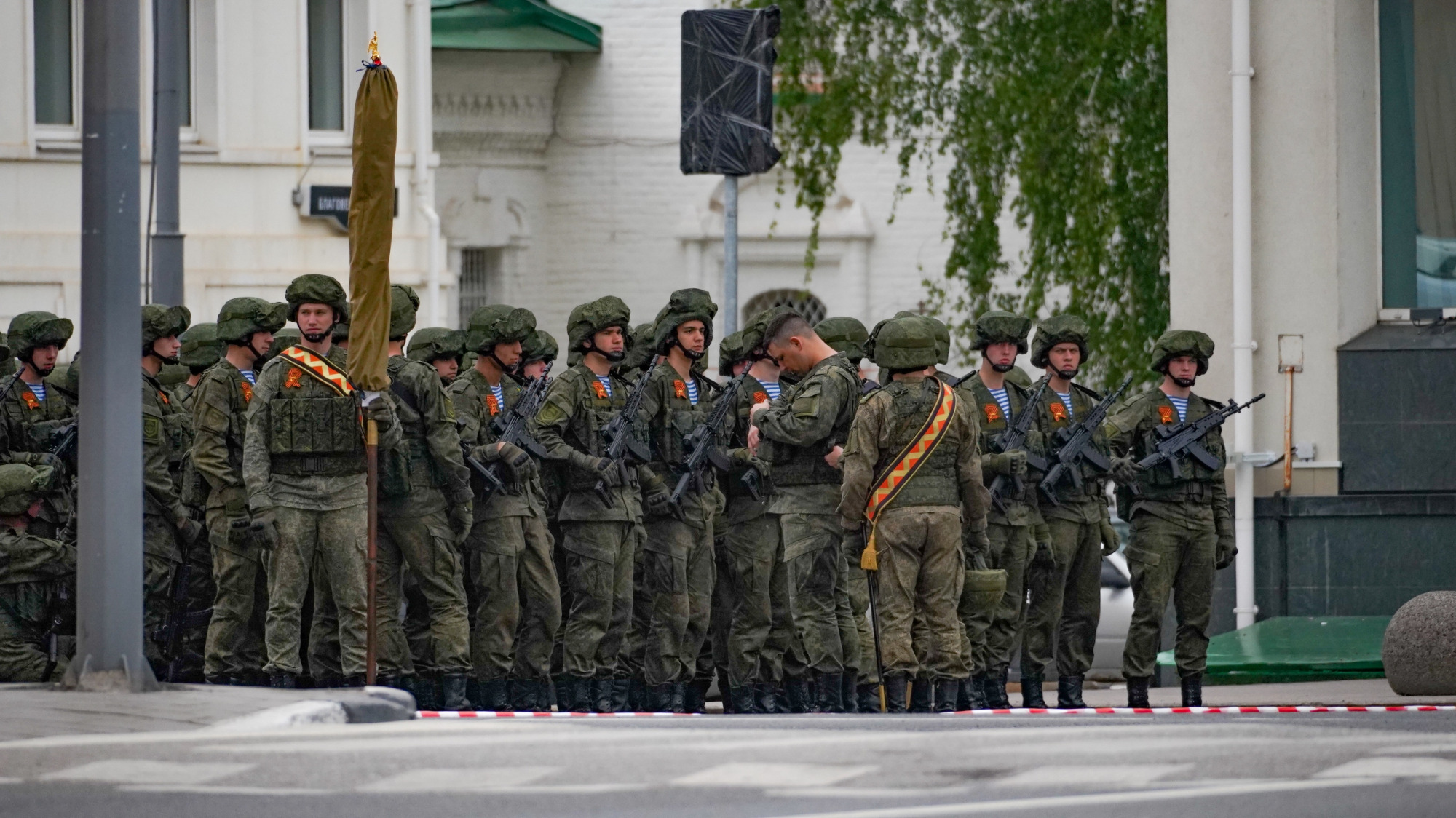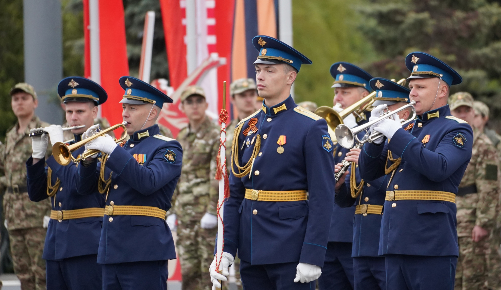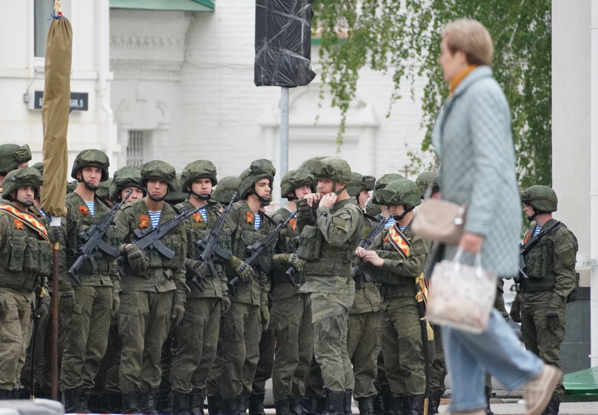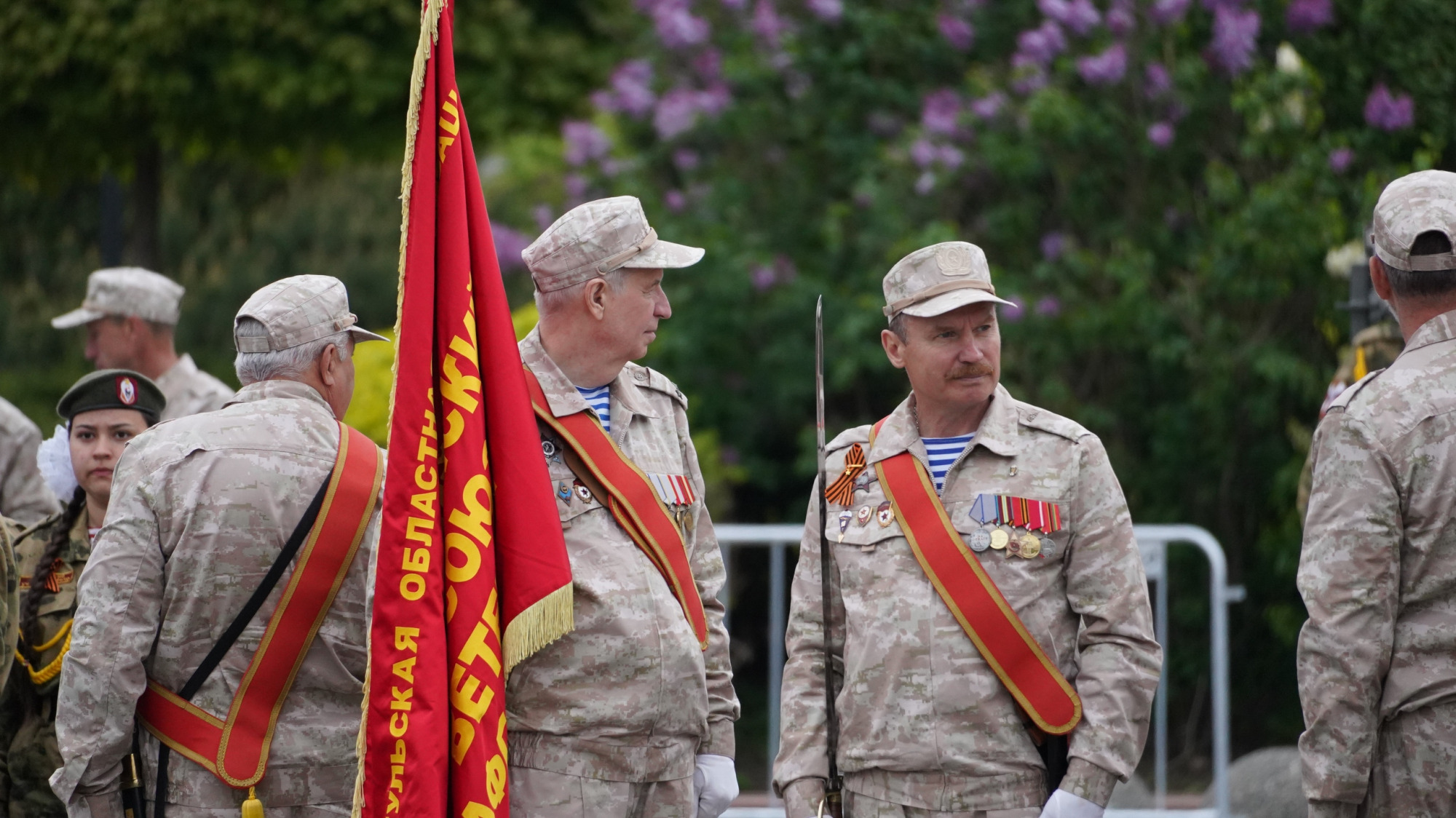 Пока зрителей рассаживали по местам, участники парада готовились к репетиции. О том, как проходила эта подготовка — в фоторепортаже «Тульской прессы».