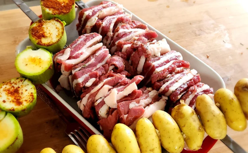 - Используйте широкие шампура — так фарш лучше крепится, а готовый кебаб получается сочнее.