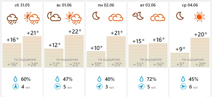 В пятницу и субботу — 30 и 31 мая — столбики термометров еще будут держаться на отметке +25…+27 градусов. Однако после теплая аномалия почти полностью сократится. И уже к 3 июня похолодает до +21 градуса.