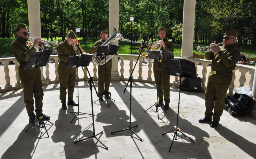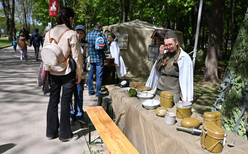 И, конечно, не обошлось без знакомых всем мелодий военных лет. Их исполняли инструментальные оркестры. А набирались сил гости праздника с помощью чая и каши из полевой кухни.