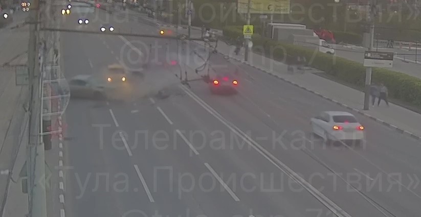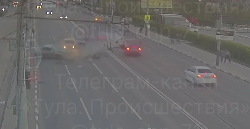 Появилась запись момента жесткого ДТП, произошедшего 3 мая на проспекте Ленина в Туле. Ее опубликовали в сообществе «Тула. Происшествия».