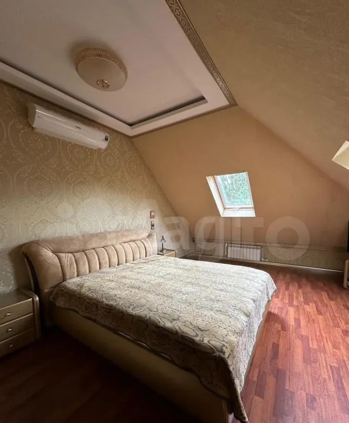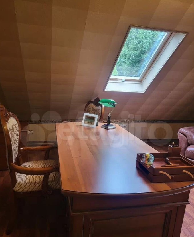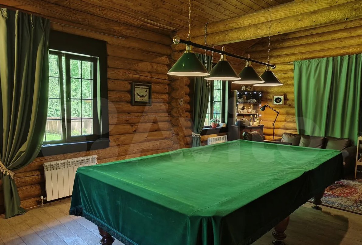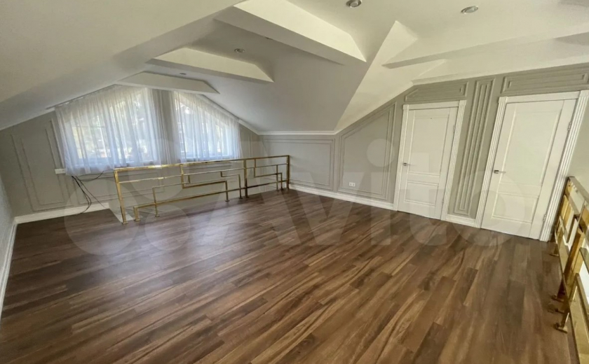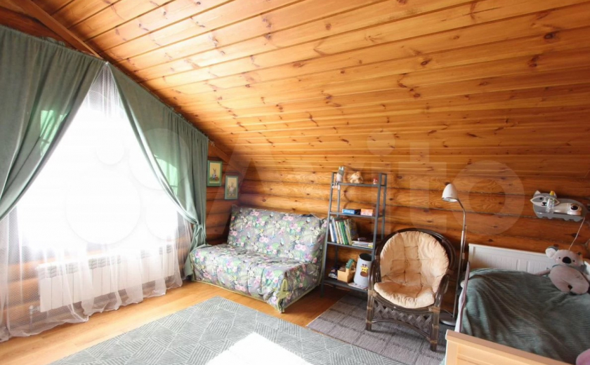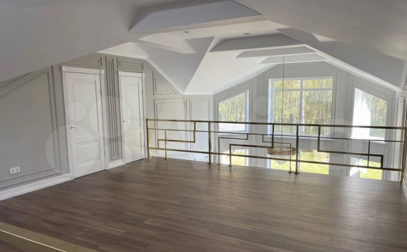 Дом находится в Заокском районе. Владелец готов с ним расстаться за 25,4 млн рублей. Внутри — шесть спален, кухня-столовая, гостиная с камином, два санузла, три гардеробных, два балкона и терраса. Дом находится по соседству с прудом и пляжем.