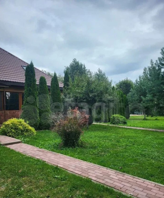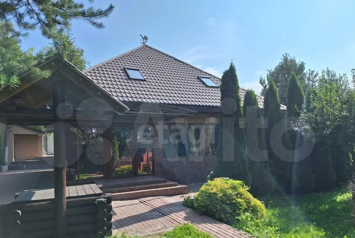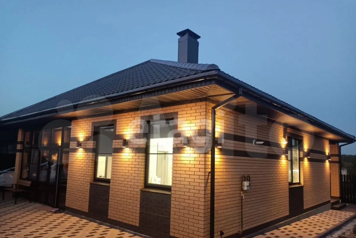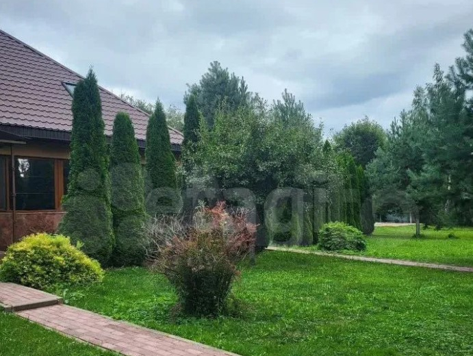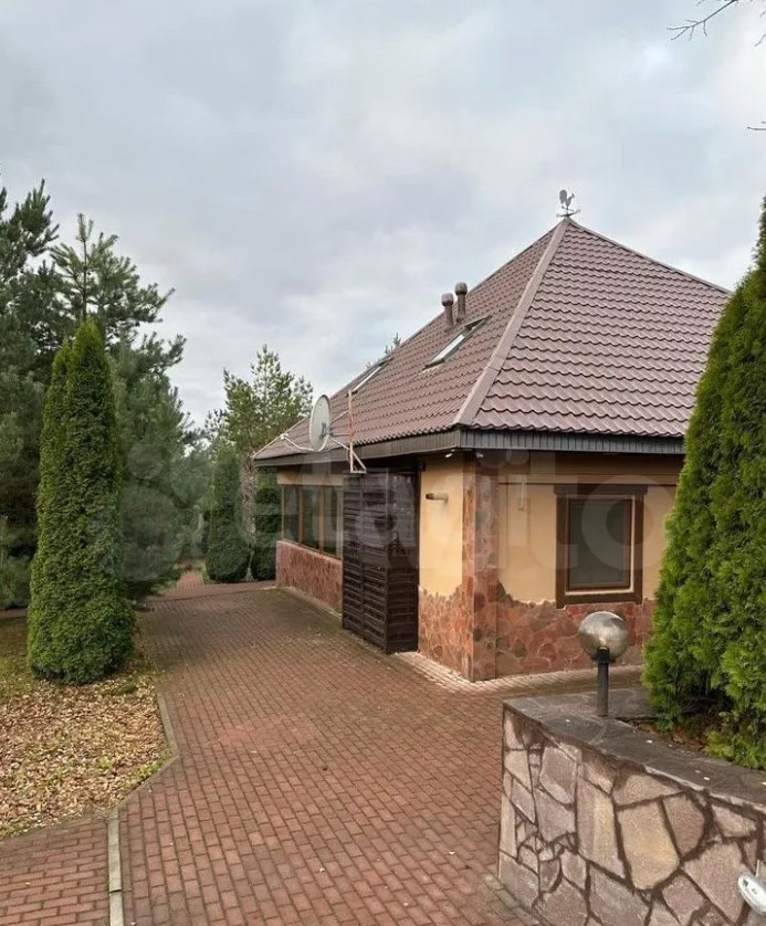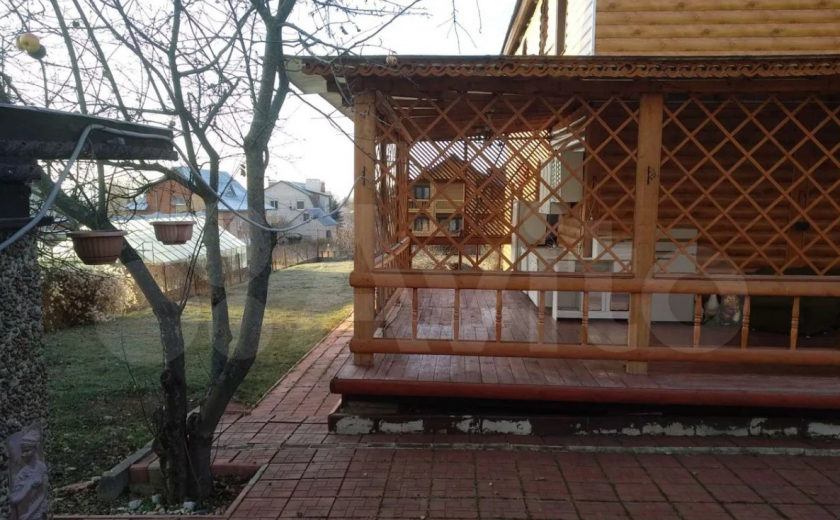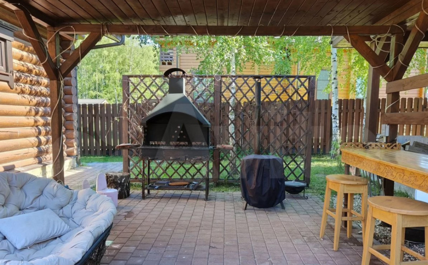 Дом находится в Туле на улице Дачной. В объявлении указано, что построен он по эксклюзивному проекту. На участке выполнен ландшафтный дизайн, установлена беседка, зона барбекю, колодец и оборудован летний сад. Есть также два пригодных для жилья гостевых года.