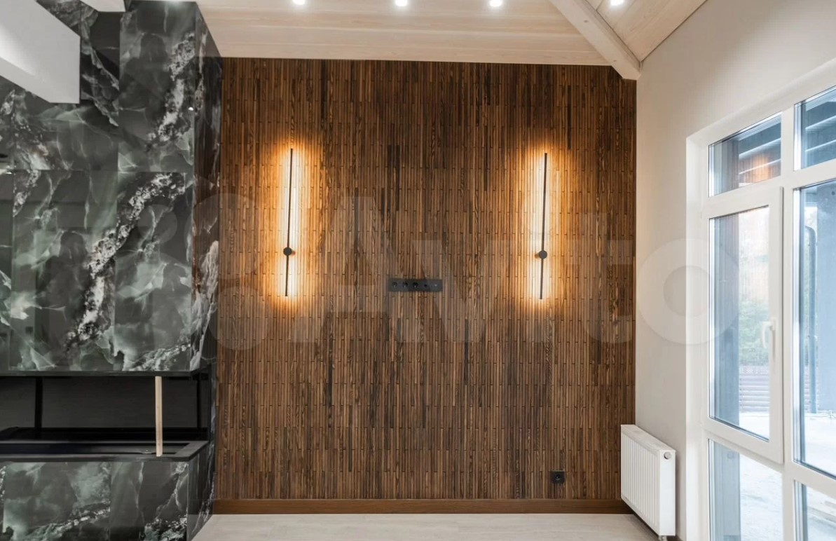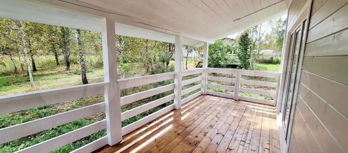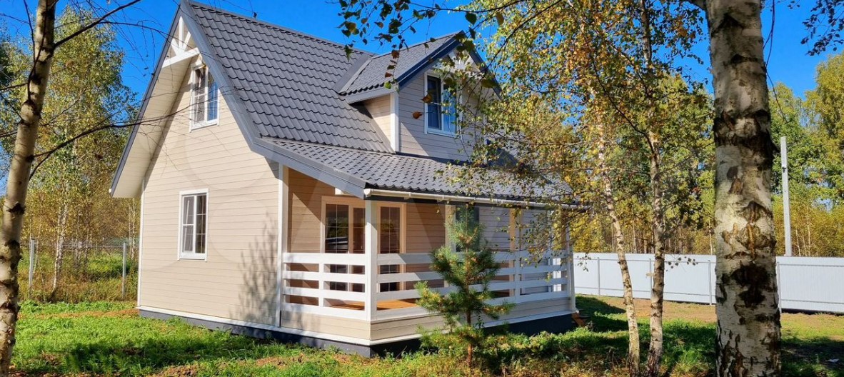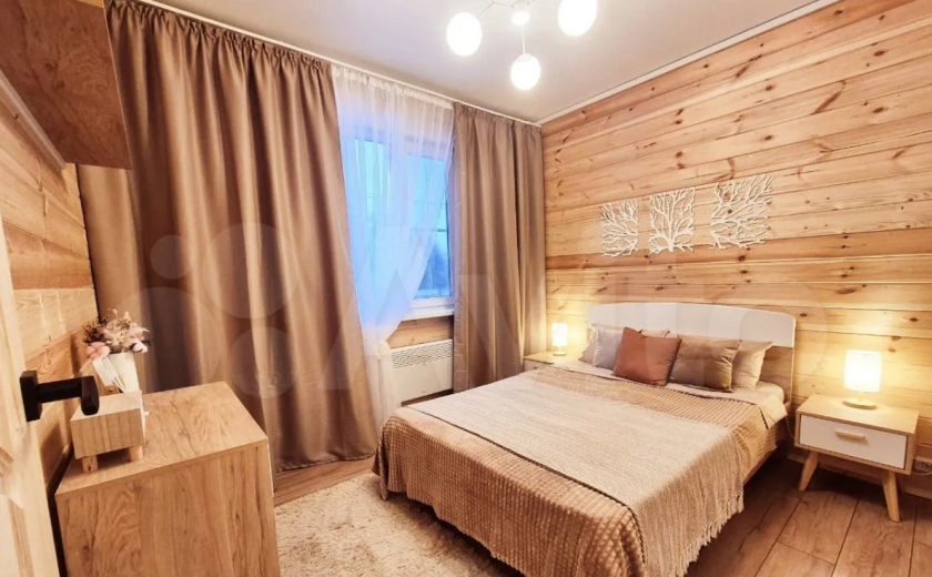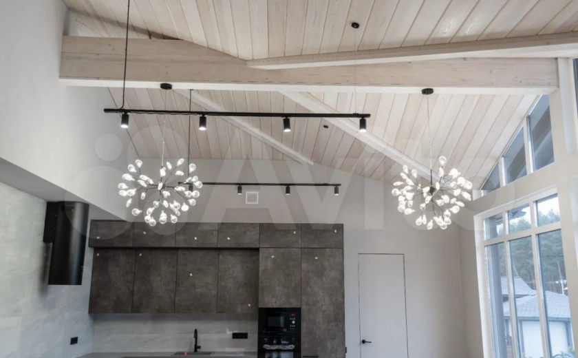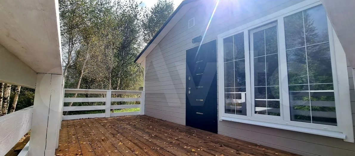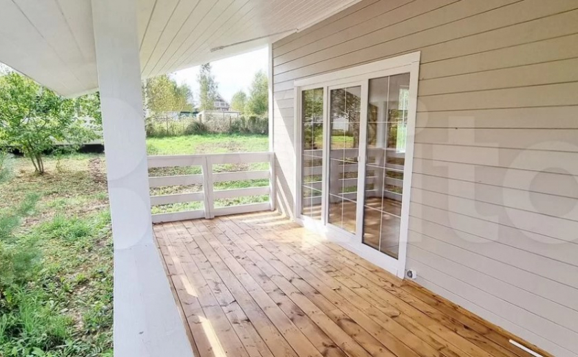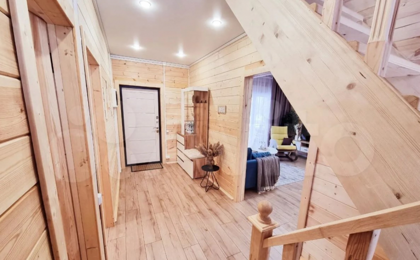Дом в Заокском районе продается за 8,9 млн рублей. Он выполнен в скандинавском стиле по индивидуальному проекту. Есть баня и садовый домик. Внутри — три спальни, кухня-гостиная, санузел, гардеробная и терраса.