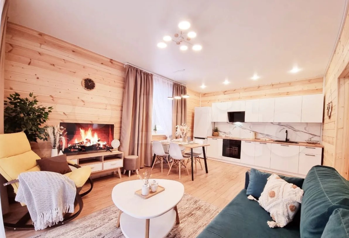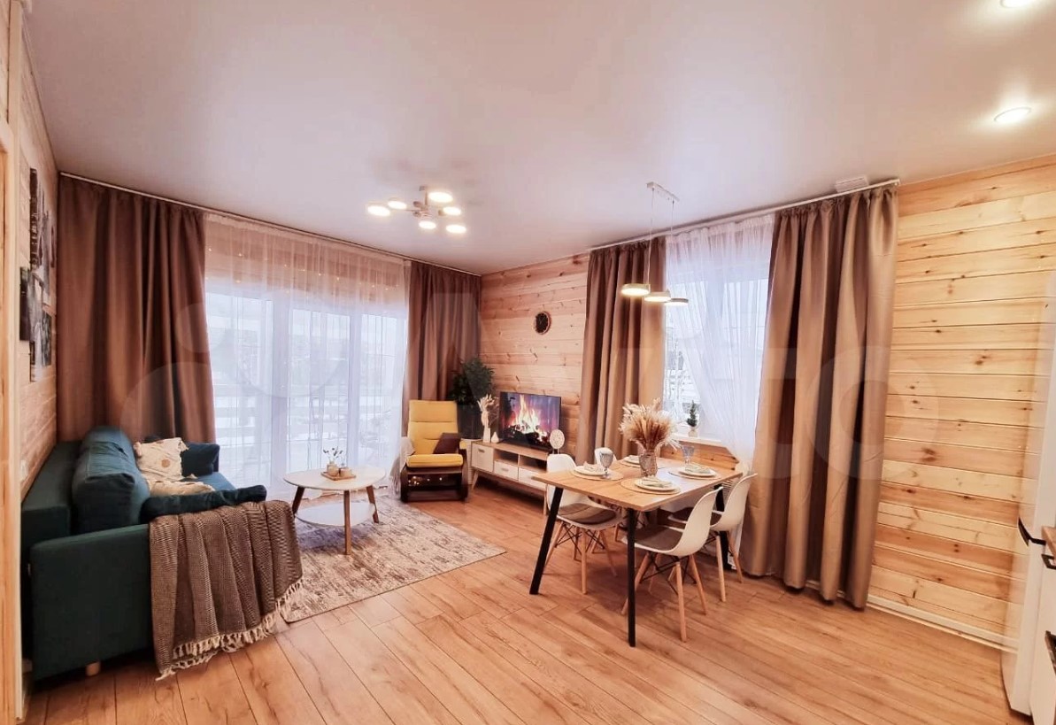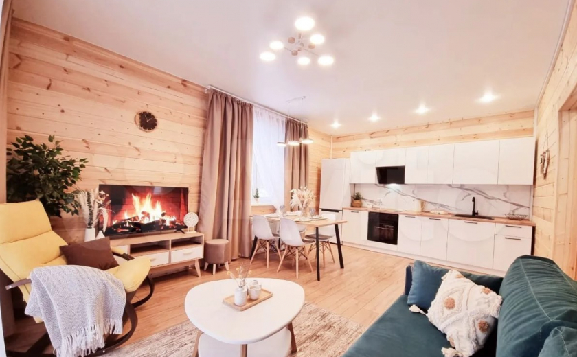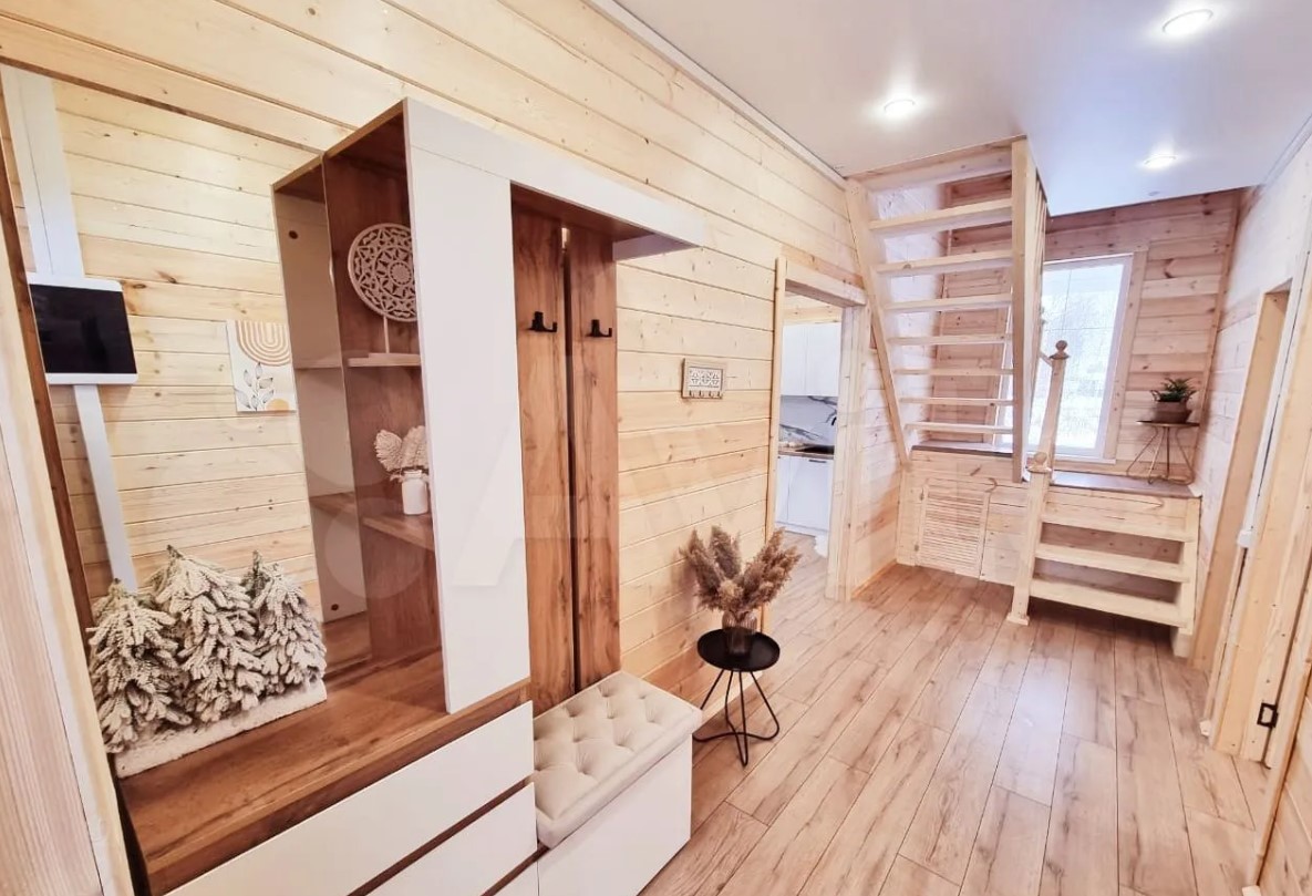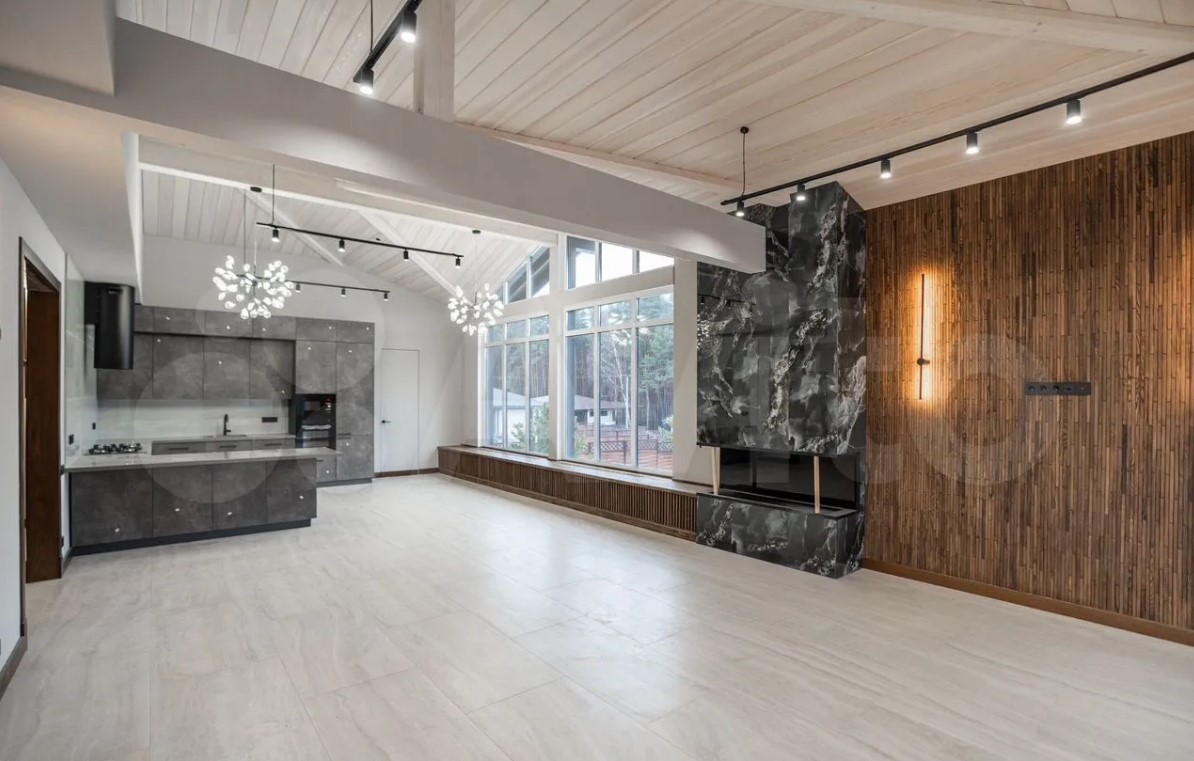 Дом в Заокском районе продается за 8,9 млн рублей. Он выполнен в скандинавском стиле по индивидуальному проекту. Есть баня и садовый домик. Внутри — три спальни, кухня-гостиная, санузел, гардеробная и терраса.