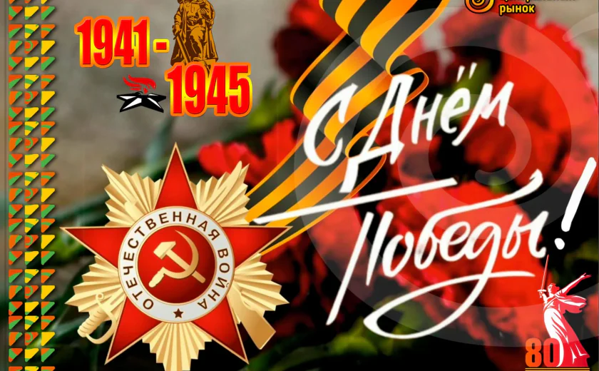 Уважаемые покупатели! ООО «Новомосковский рынок» поздравляет Вас с 80-ой годовщиной Победы в Великой Отечественной войне 1941-1945 годов, самым значимым и великим праздников!