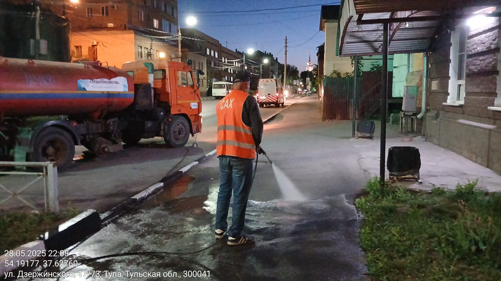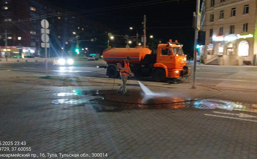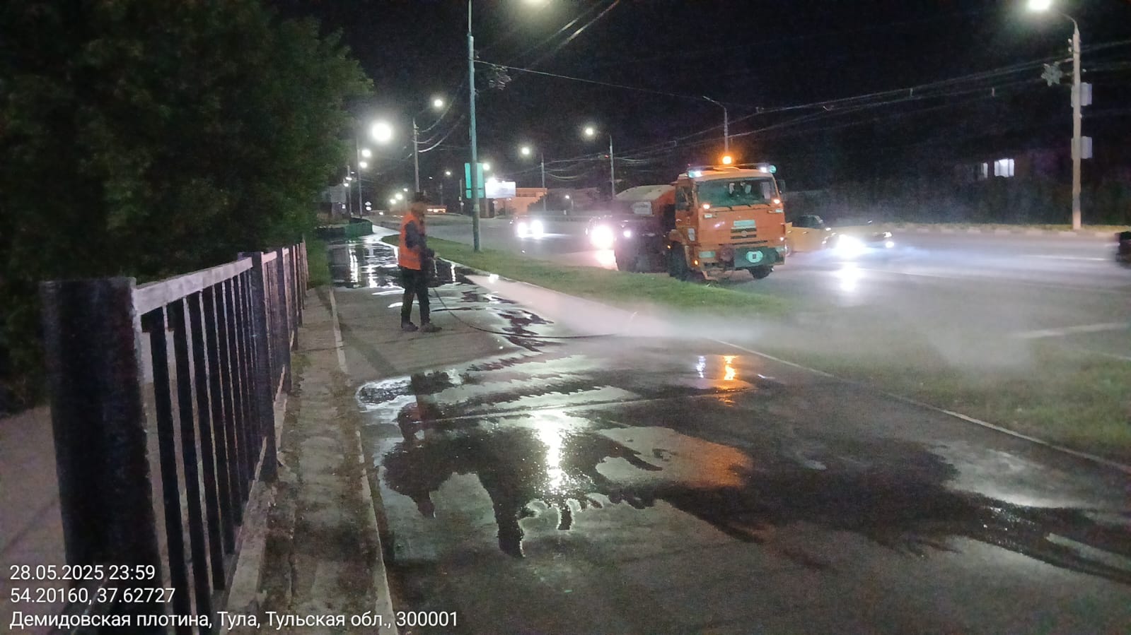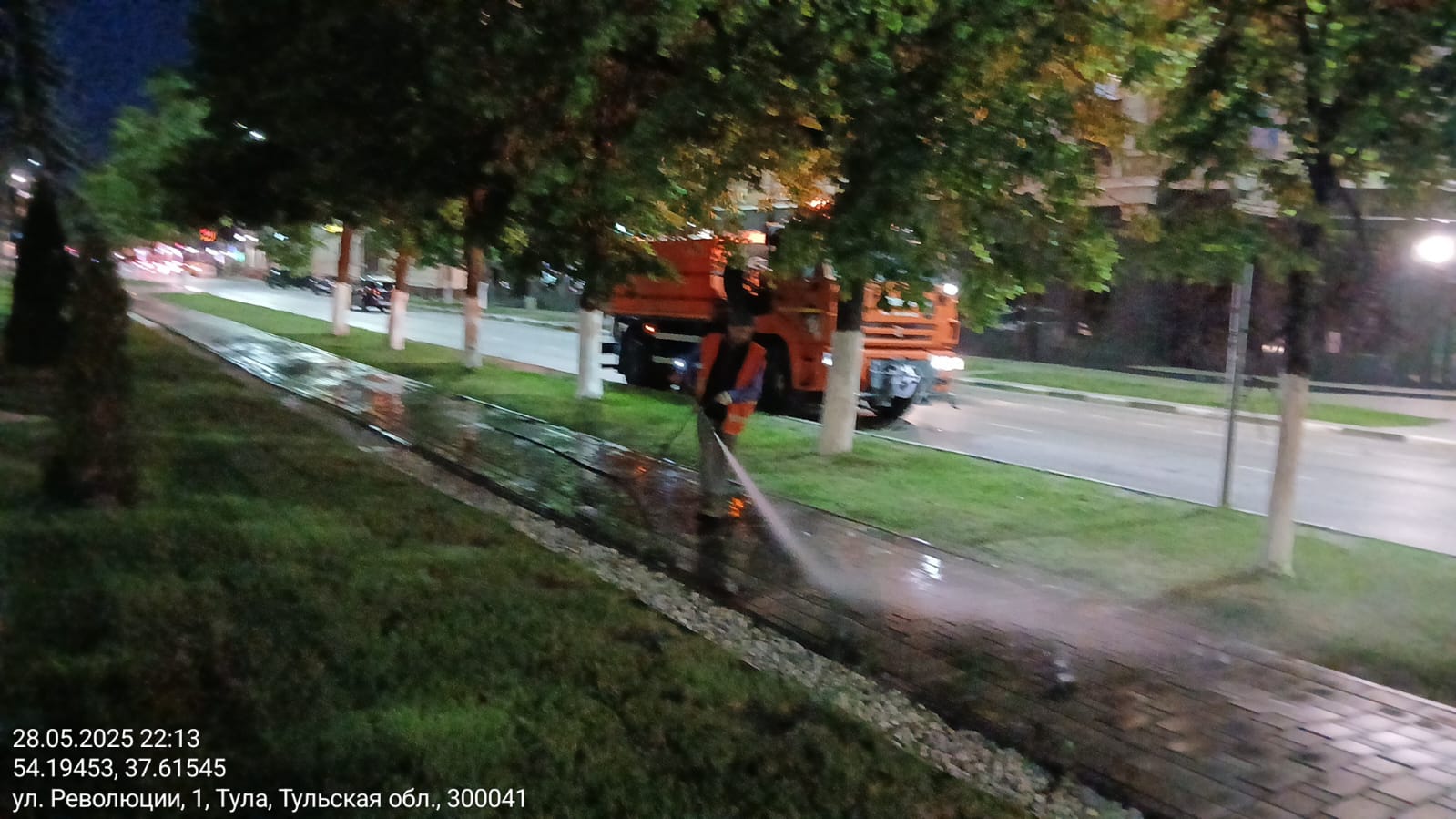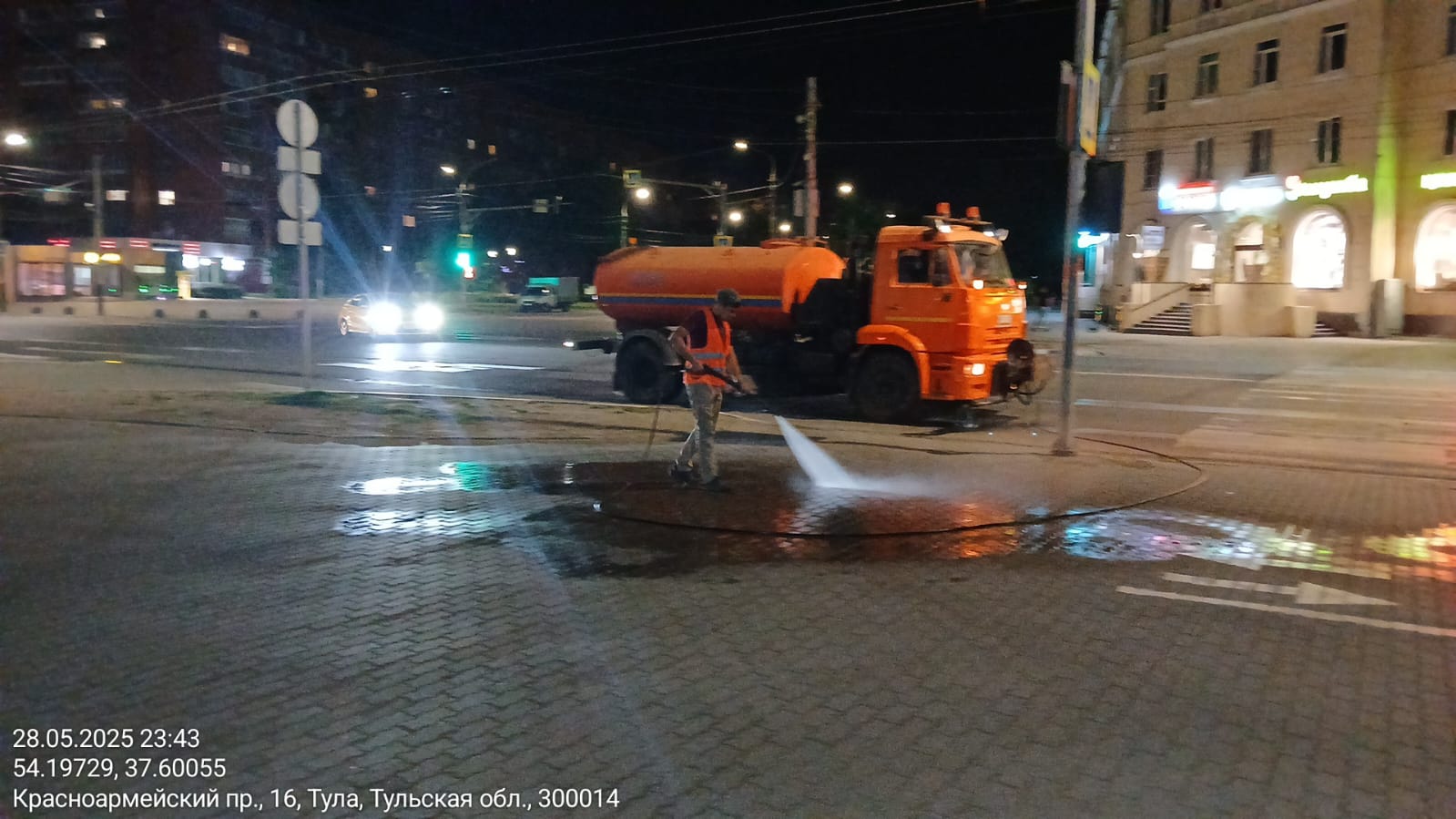 Сотрудники ООО «САХ» продолжают поддерживать порядок на улицах Тулы. Так, в ночь на 29 мая при помощи КДМ велась мойка тротуаров, пешеходных переходов, остановок и парковок по улицам Менделеевская, Благовещенская, Тургеневская, Ф. Энгельса, Революции, Дзержинского, Пролетарская, Октябрьская, Черниковский, Благовещенский, Денисовский и Садовый переулки, а также Красноармейский проспект.