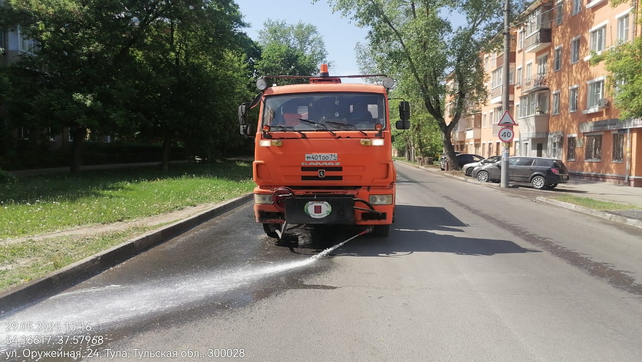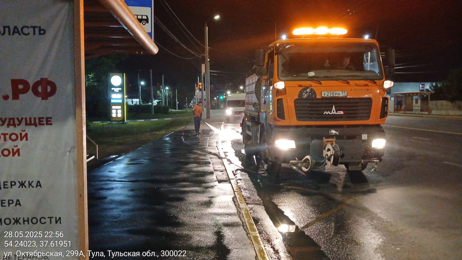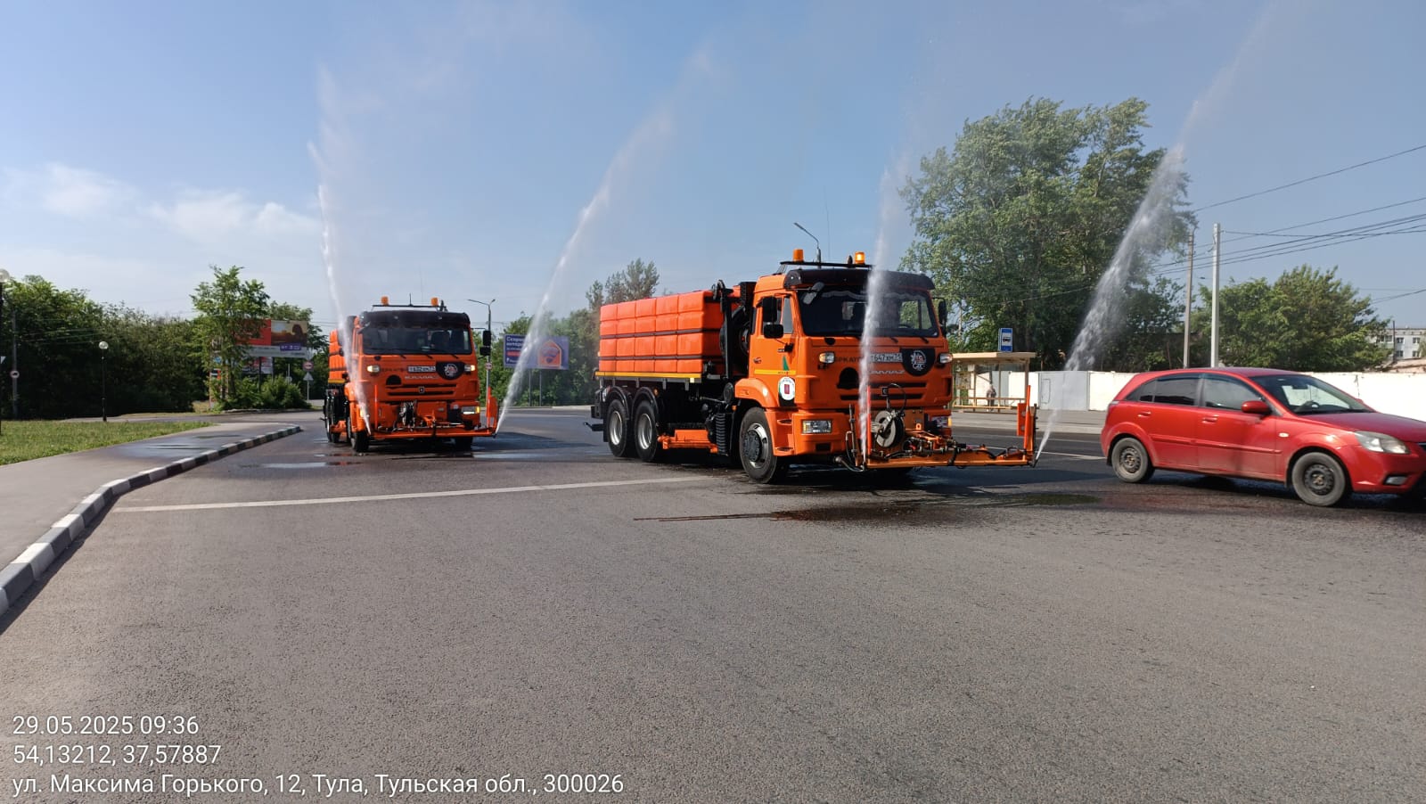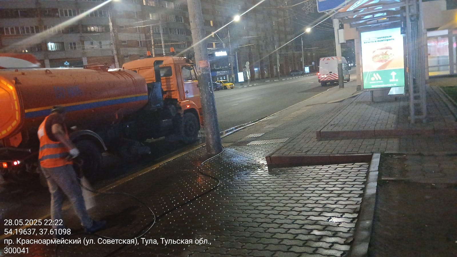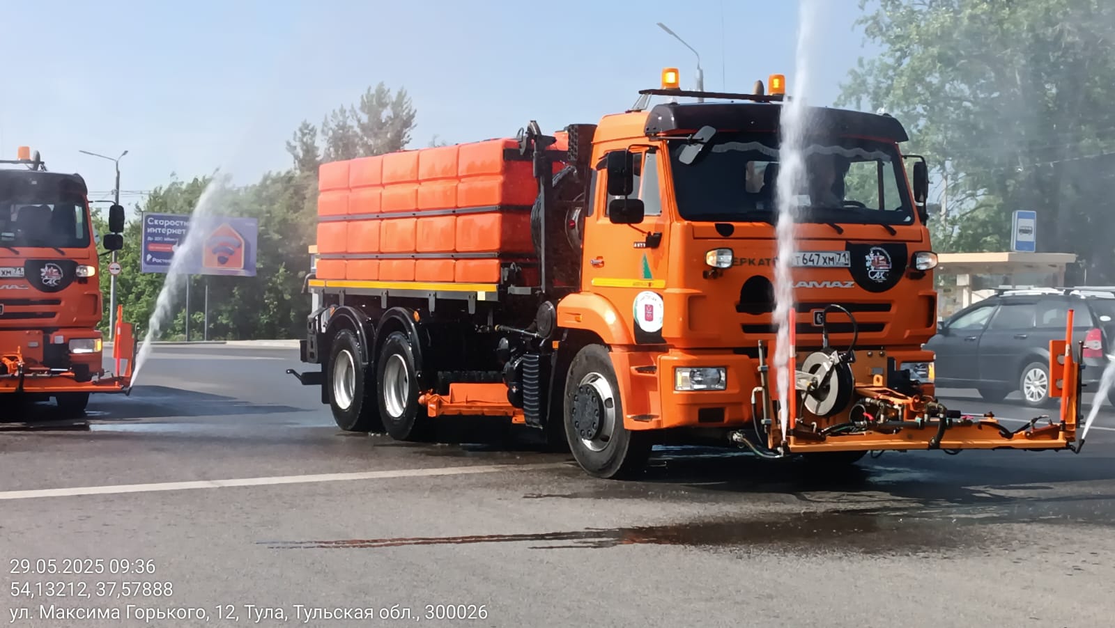 Сотрудники ООО «САХ» продолжают поддерживать порядок на улицах Тулы. Так, в ночь на 29 мая при помощи КДМ велась мойка тротуаров, пешеходных переходов, остановок и парковок по улицам Менделеевская, Благовещенская, Тургеневская, Ф. Энгельса, Революции, Дзержинского, Пролетарская, Октябрьская, Черниковский, Благовещенский, Денисовский и Садовый переулки, а также Красноармейский проспект.