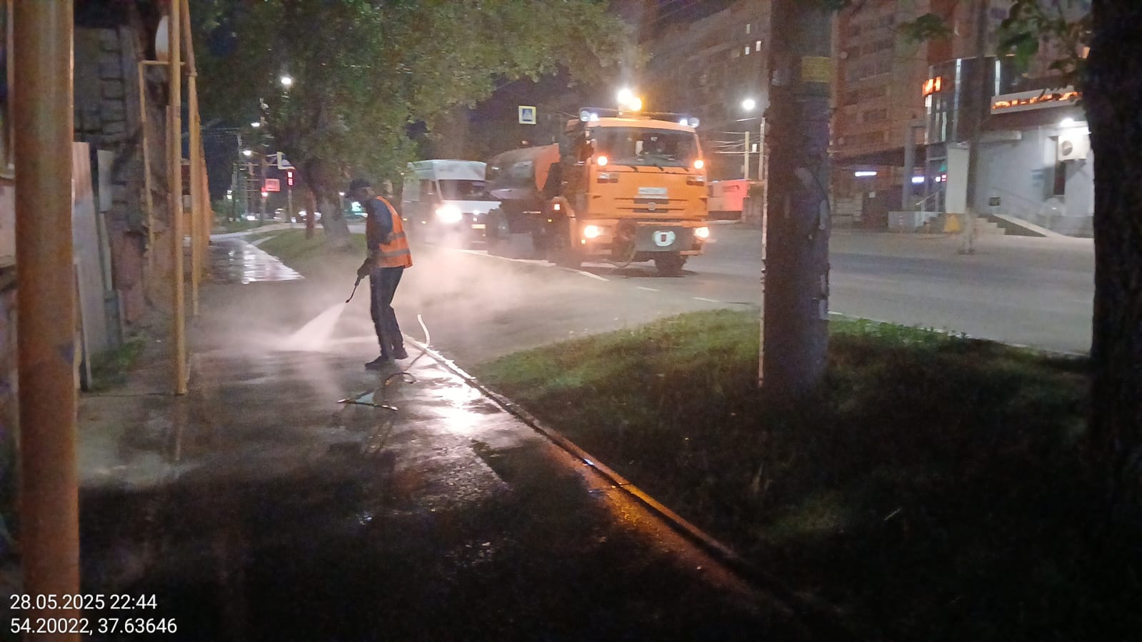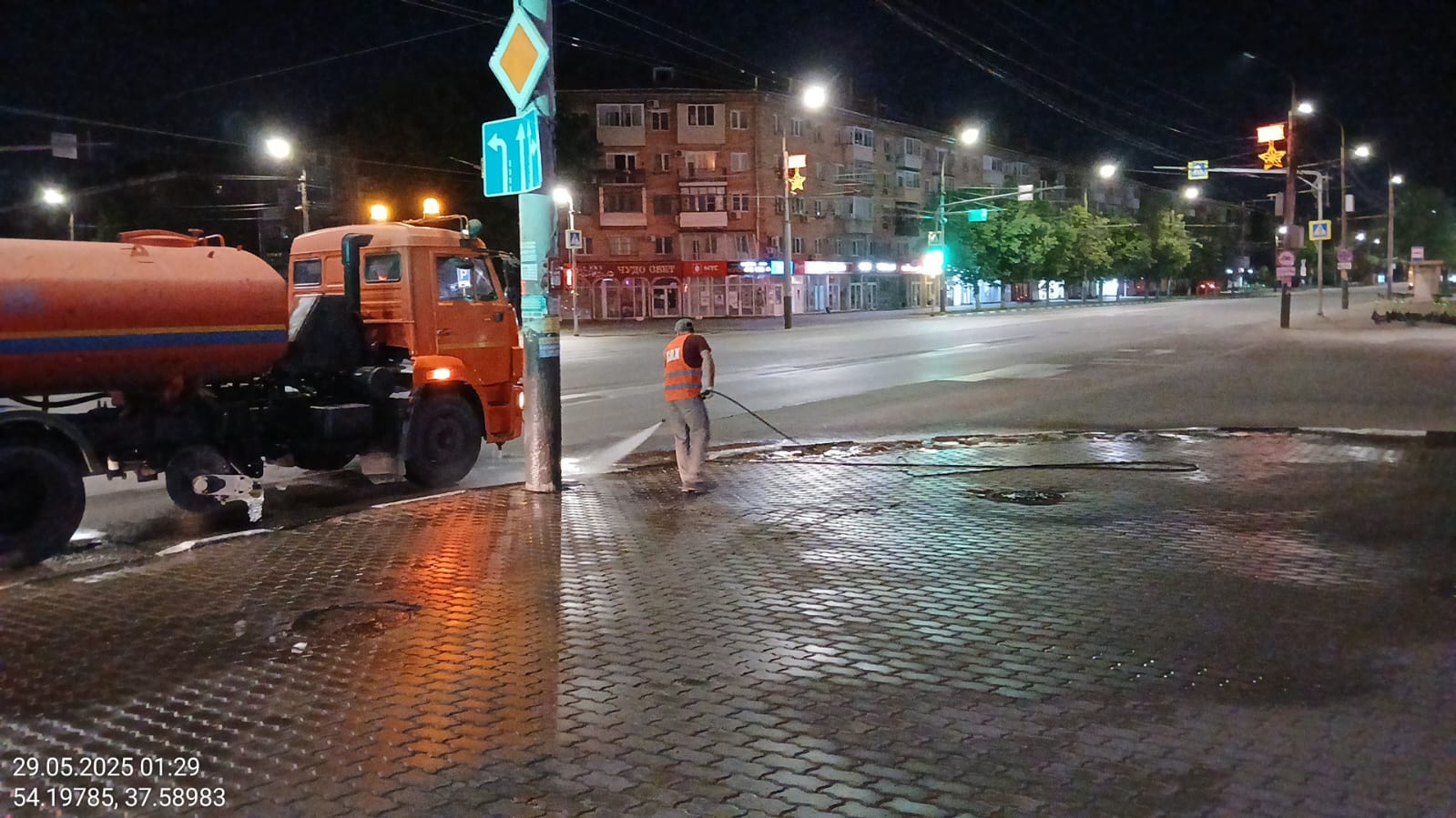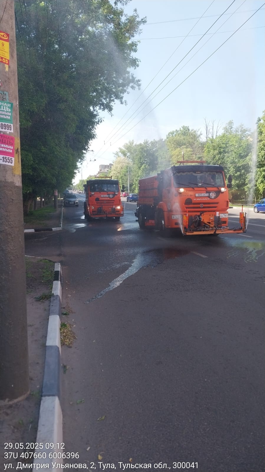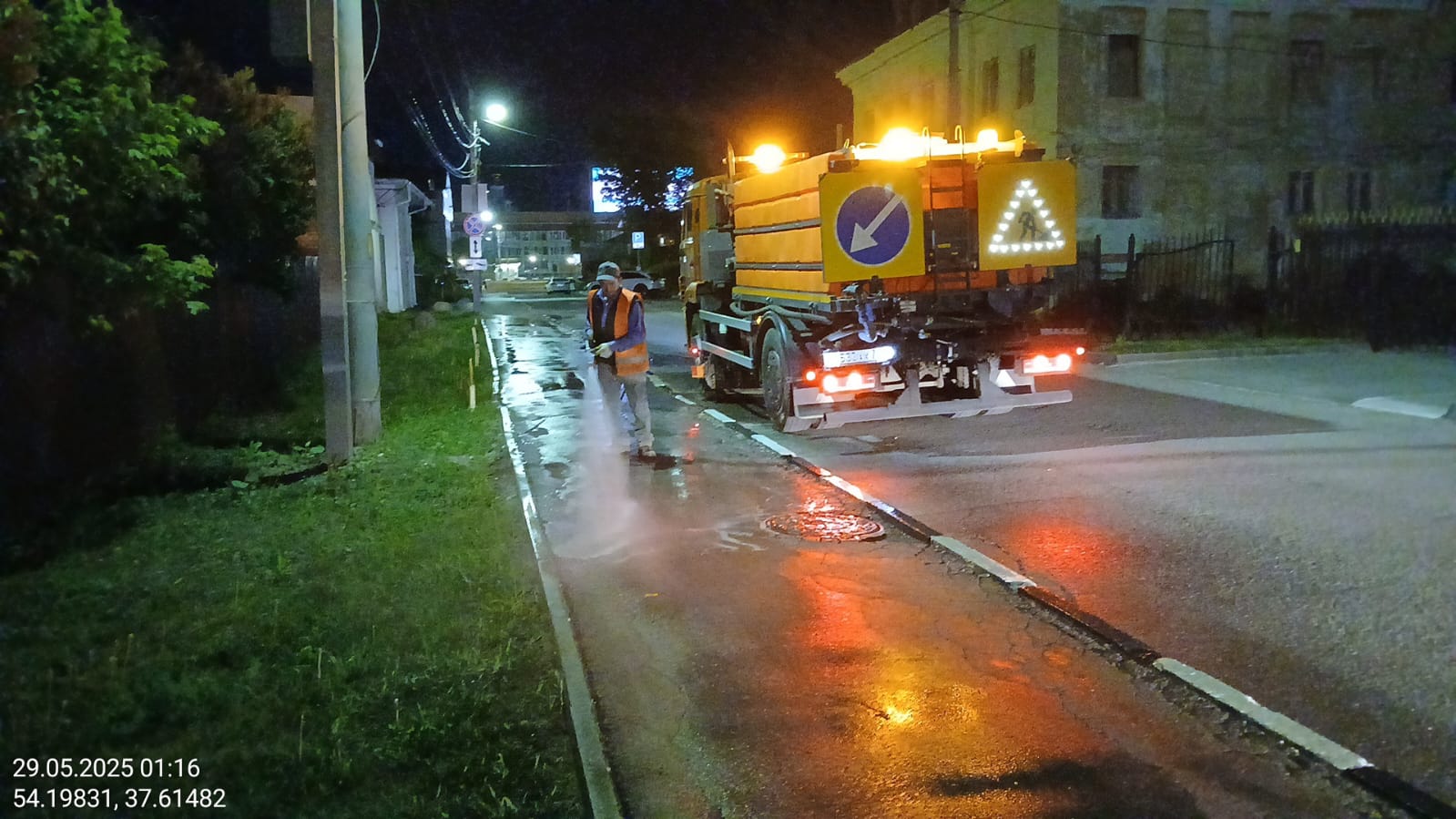 Сотрудники ООО «САХ» продолжают поддерживать порядок на улицах Тулы. Так, в ночь на 29 мая при помощи КДМ велась мойка тротуаров, пешеходных переходов, остановок и парковок по улицам Менделеевская, Благовещенская, Тургеневская, Ф. Энгельса, Революции, Дзержинского, Пролетарская, Октябрьская, Черниковский, Благовещенский, Денисовский и Садовый переулки, а также Красноармейский проспект.