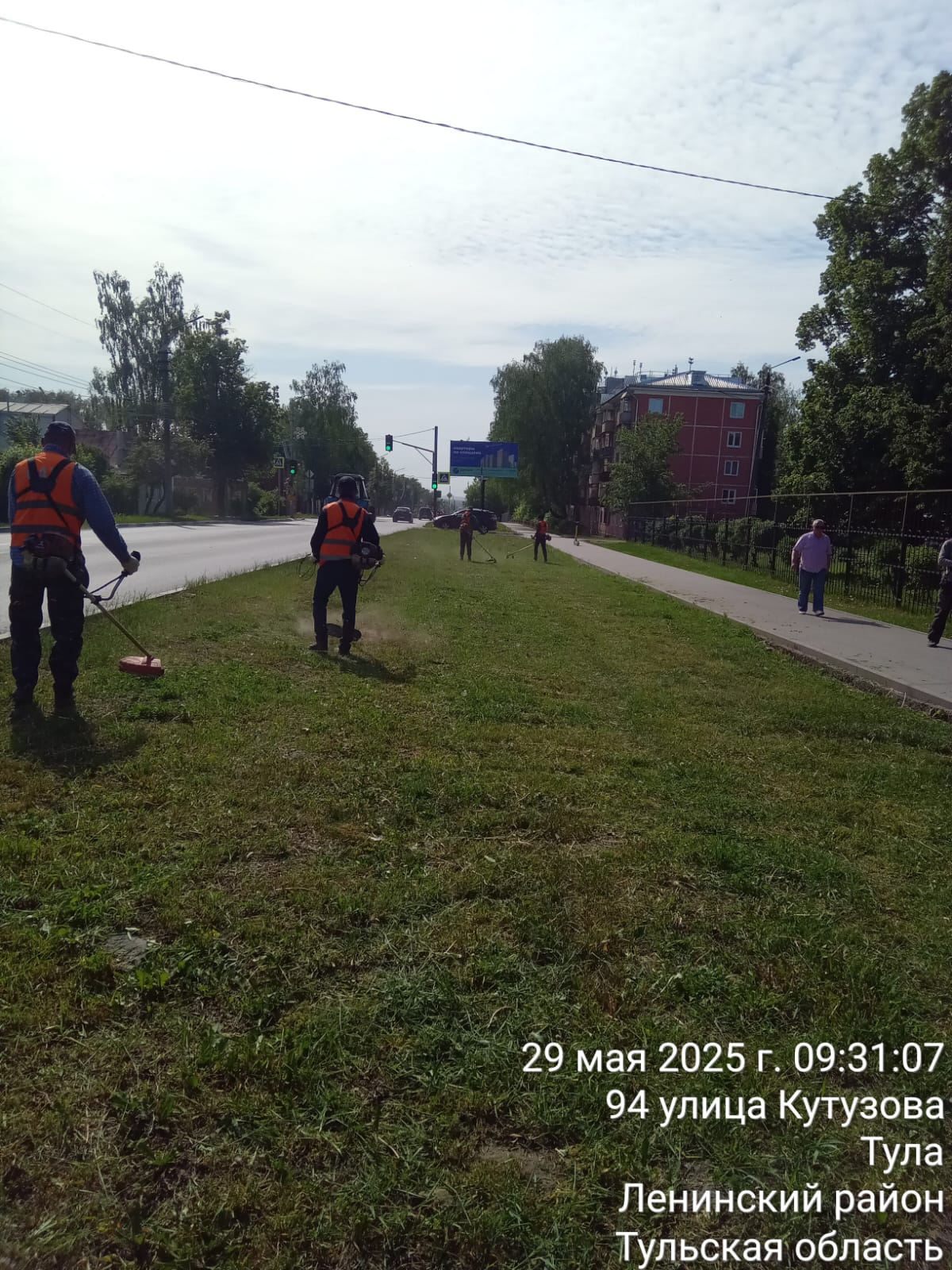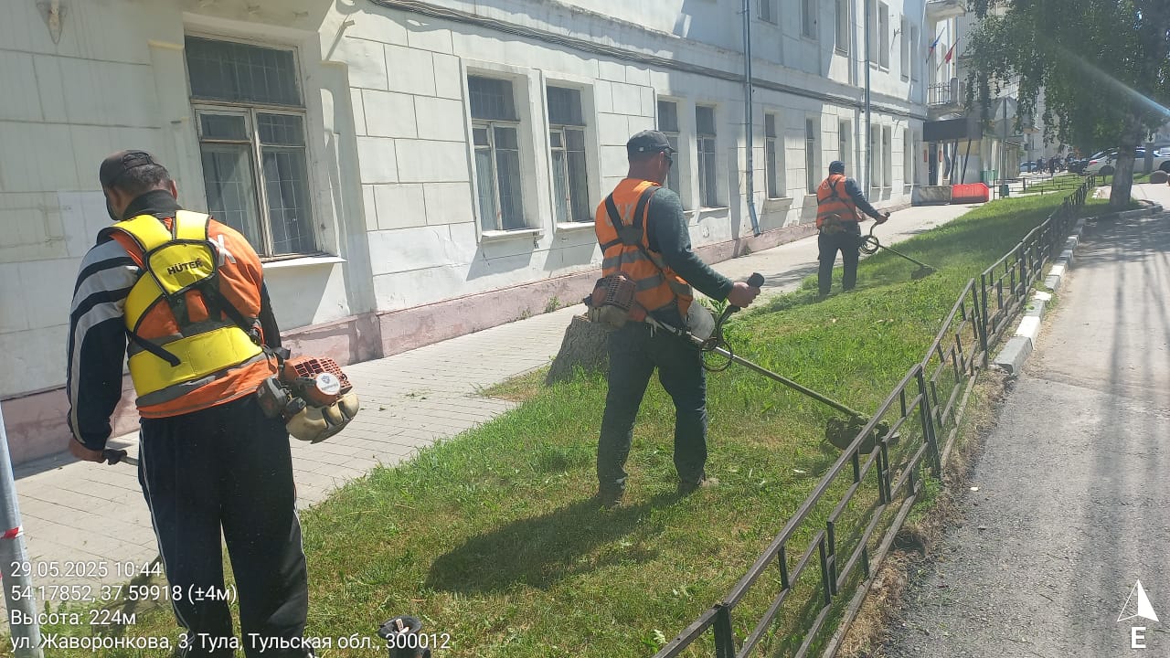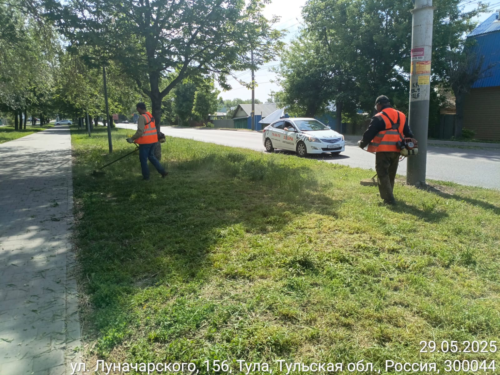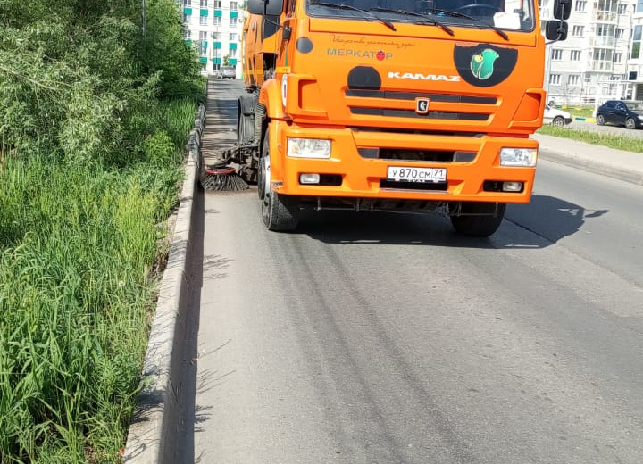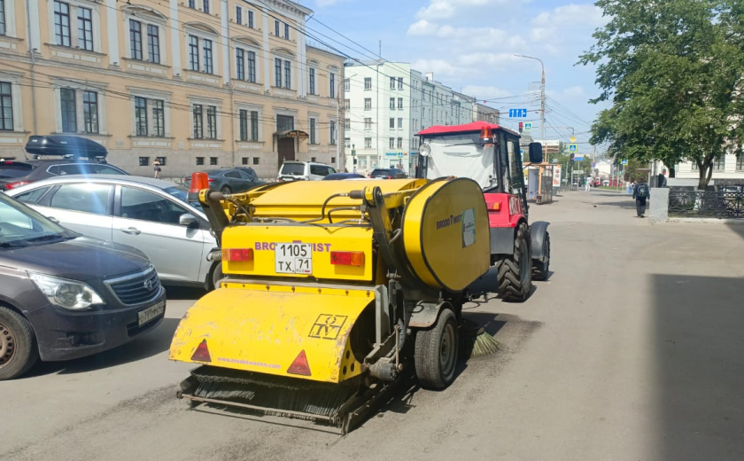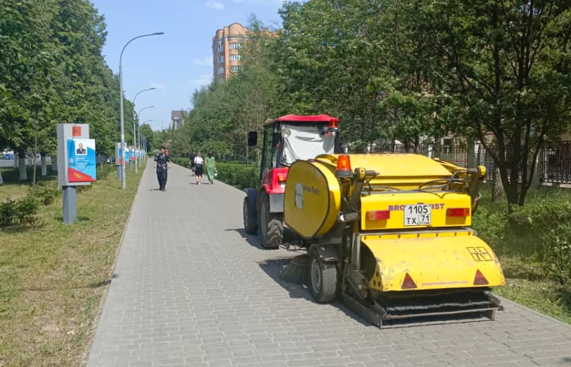 Днем окашиваются газоны и собирается трава на Одоевском шоссе и улицах Жаворонкова, Ф. Энгельса, Кутузова, Чмутова и Луначарского. В Центральном и Советском округах оружейной столицы выполнялось механизированное подметание тротуаров с помощью прицепных устройств Twist. Вручную подметаются остановки, парковки и тротуары.