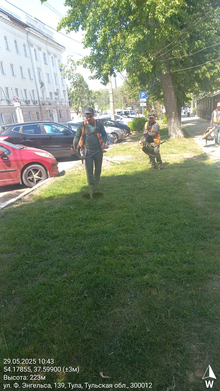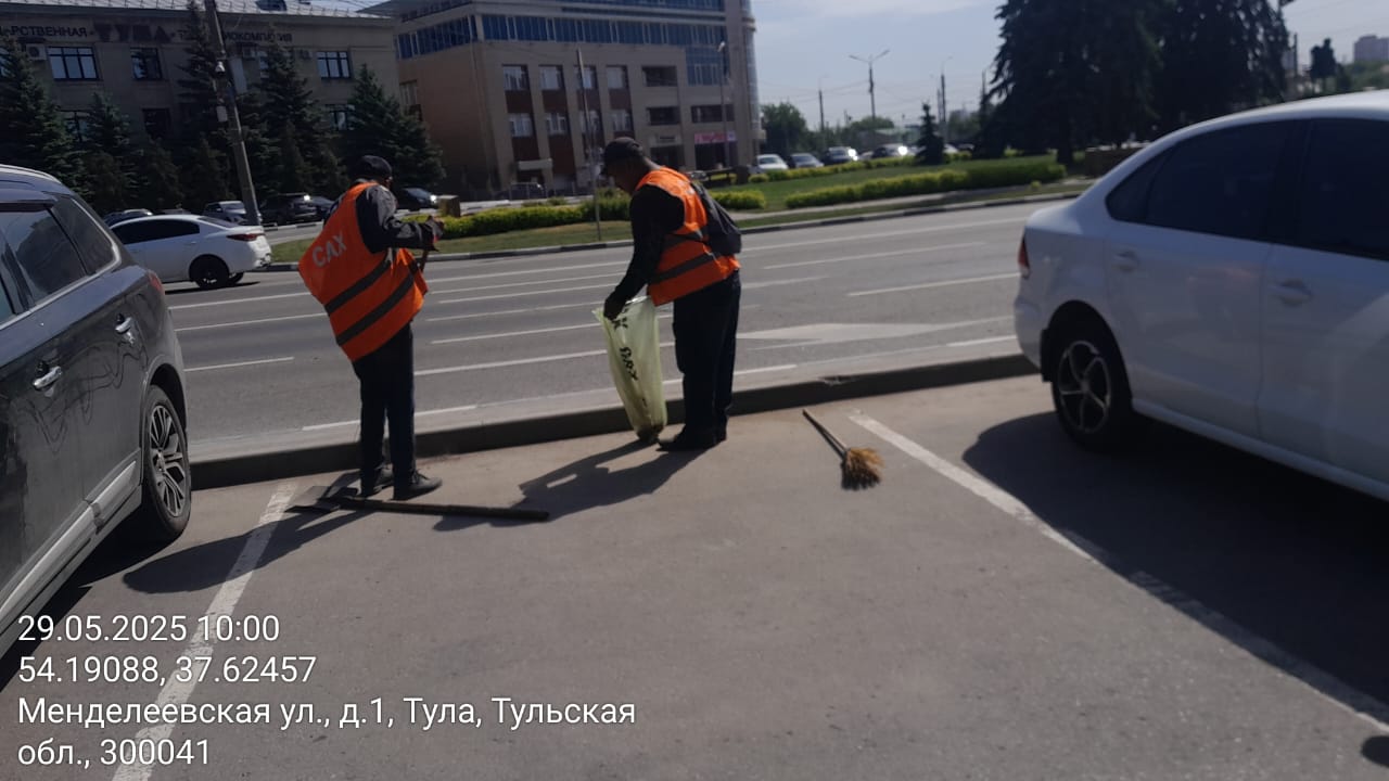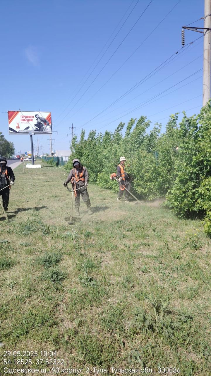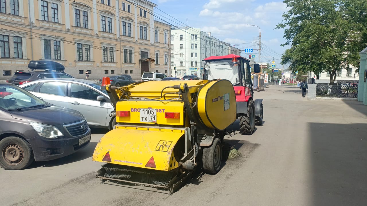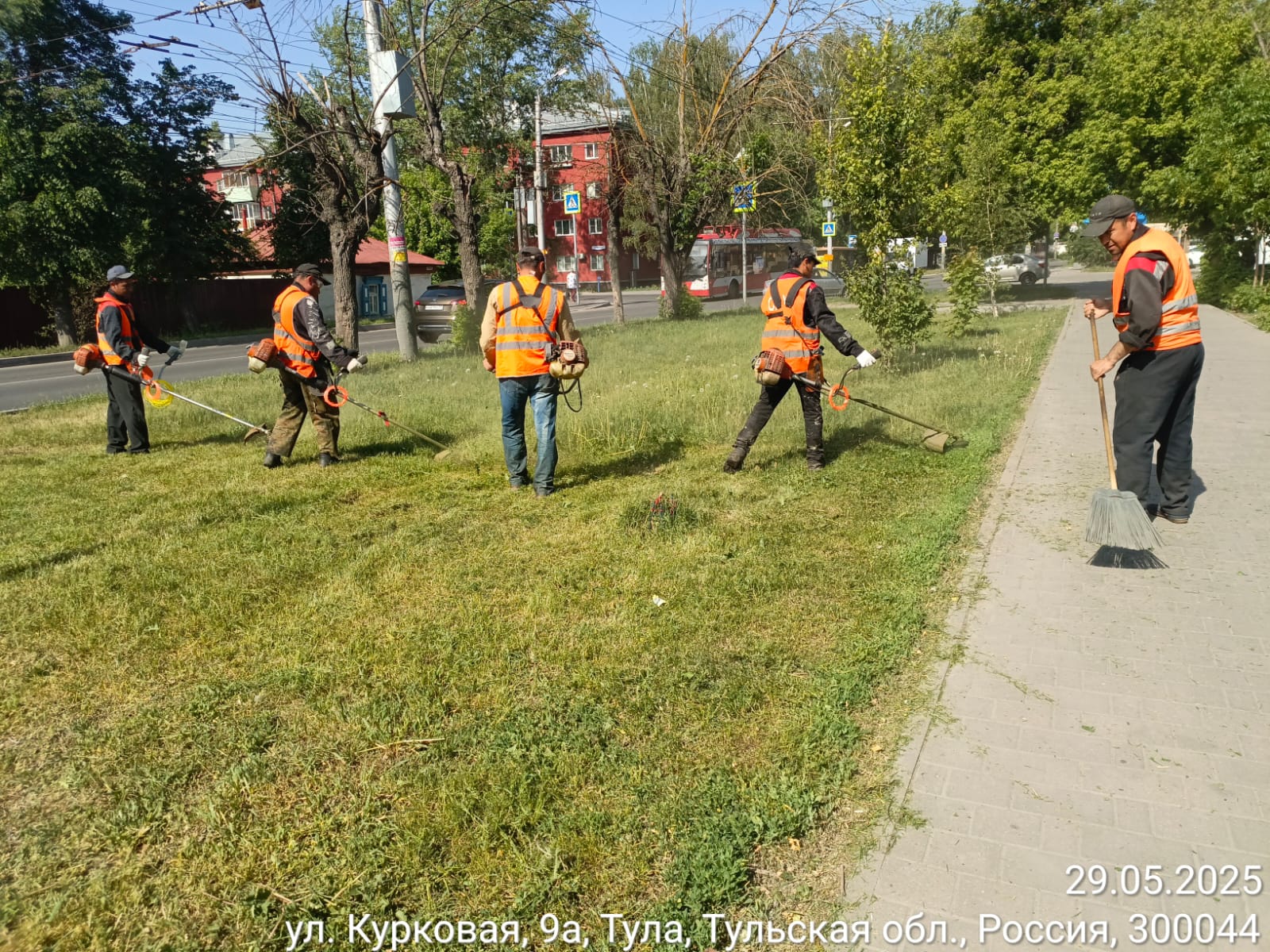 Днем окашиваются газоны и собирается трава на Одоевском шоссе и улицах Жаворонкова, Ф. Энгельса, Кутузова, Чмутова и Луначарского. В Центральном и Советском округах оружейной столицы выполнялось механизированное подметание тротуаров с помощью прицепных устройств Twist. Вручную подметаются остановки, парковки и тротуары.