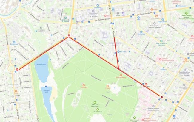 - на Первомайской улице — от улицы Фридриха Энгельса до улицы Дмитрия Ульянова,