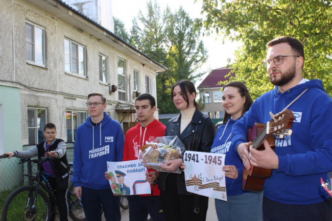 Ребята исполнили песни военных лет, «День Победы», вручили ветерану цветы, а также подарили его портрет со словами «Спасибо за Победу!», передали письма, написанные специально для него, лампаду с частицей Вечного огня, привезенного накануне из Москвы с Могилы Неизвестного солдата.