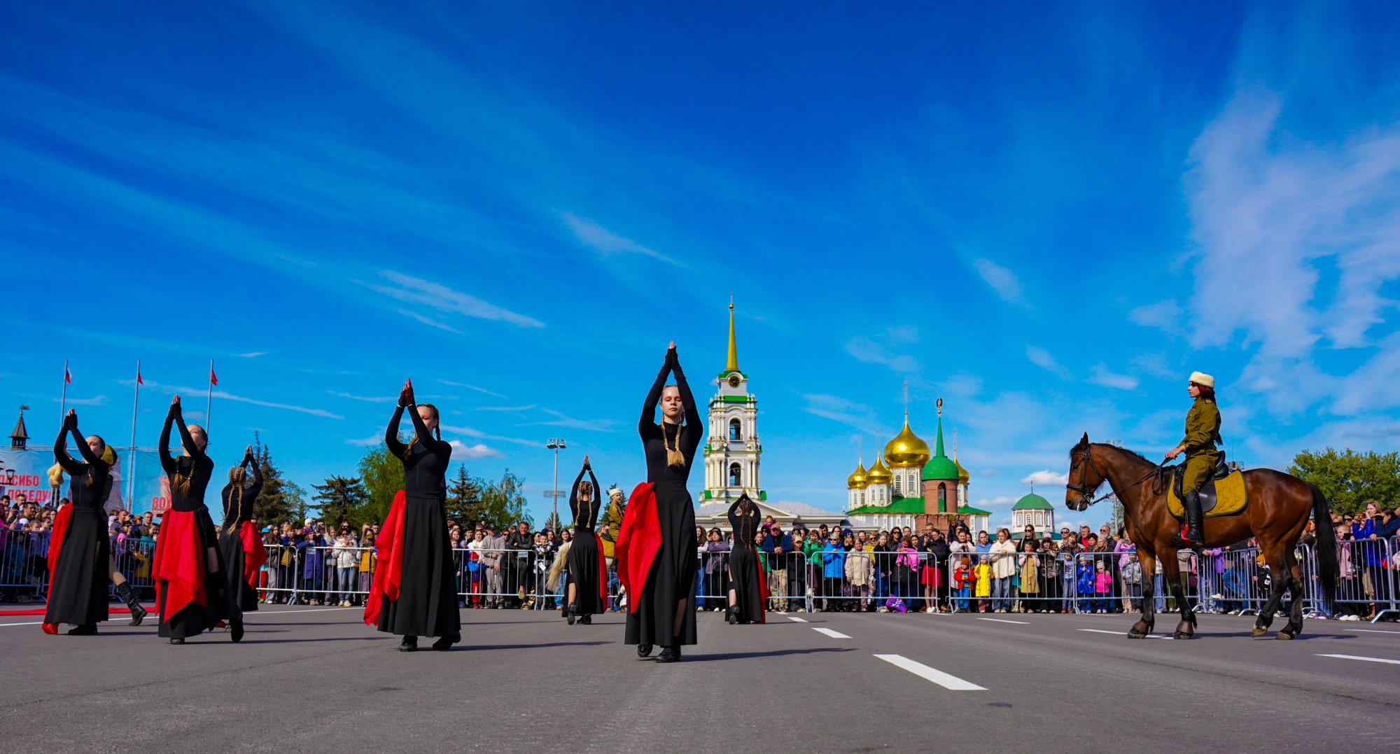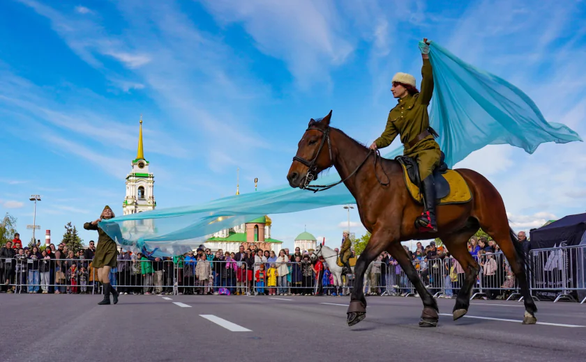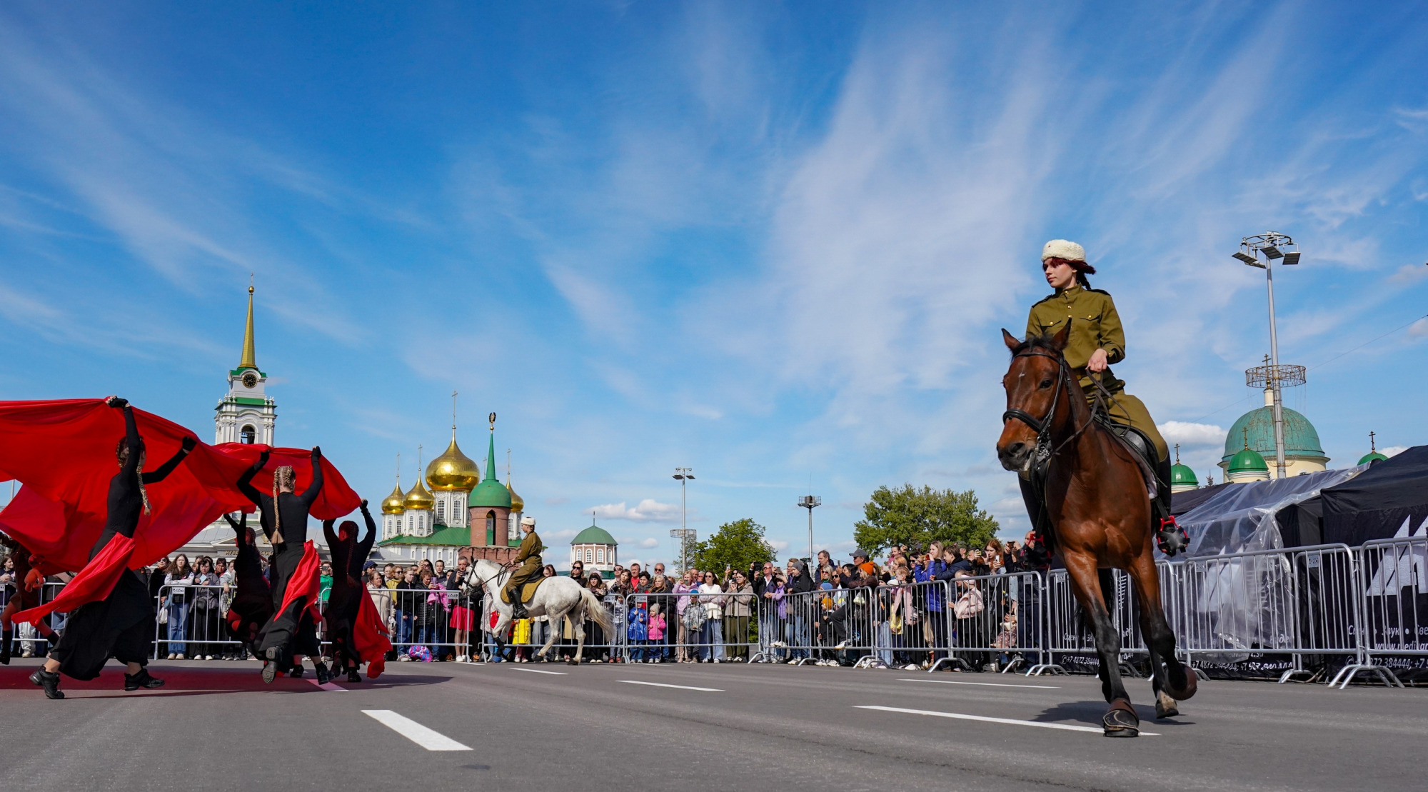А прямо на площади были показаны хореографические номера под песни военных лет. Также туляки и гости оружейной столицы могли увидеть показательные выступления на лошадях.